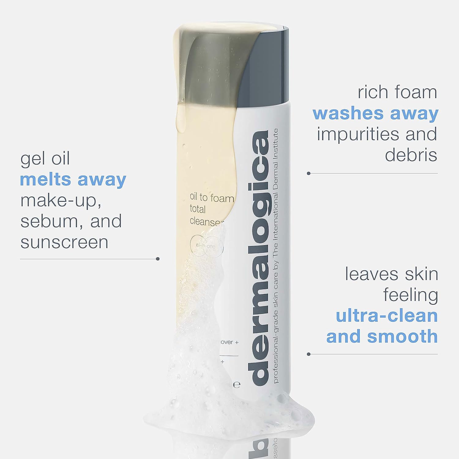 Dermalogica Oil To Foam Total Cleanser For Face - Removes Make-Up, Sunscreen, And Debris While Cleansing Skin In One Step For Ultra-Clean, Healthy-Looking Skin, 8.4 Fl Oz