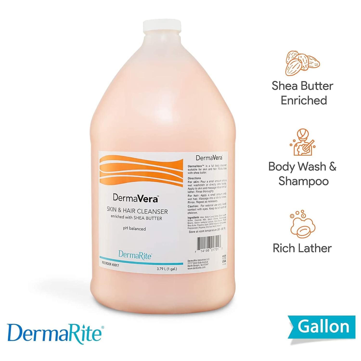 Dermavera Skin And Hair Cleanser - 1 Gallon - Enriched With Shea Butter, Ph Balanced, Rich Leather, Pleasant Fragrance, With Rich Moisturizers