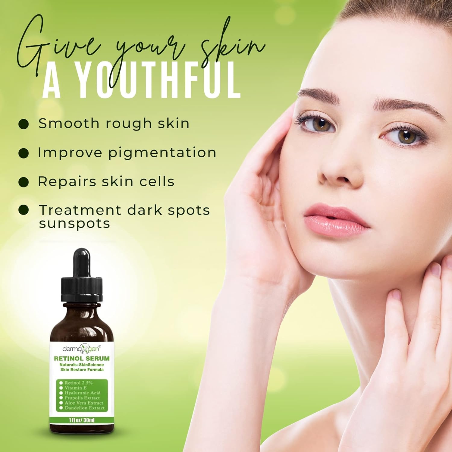 Dermaxgen Retinol Serum - Pure Organic Anti Aging, Anti Wrinkle Face Wrinkles | Renewing and Restore with Hyaluronic Acid, 1