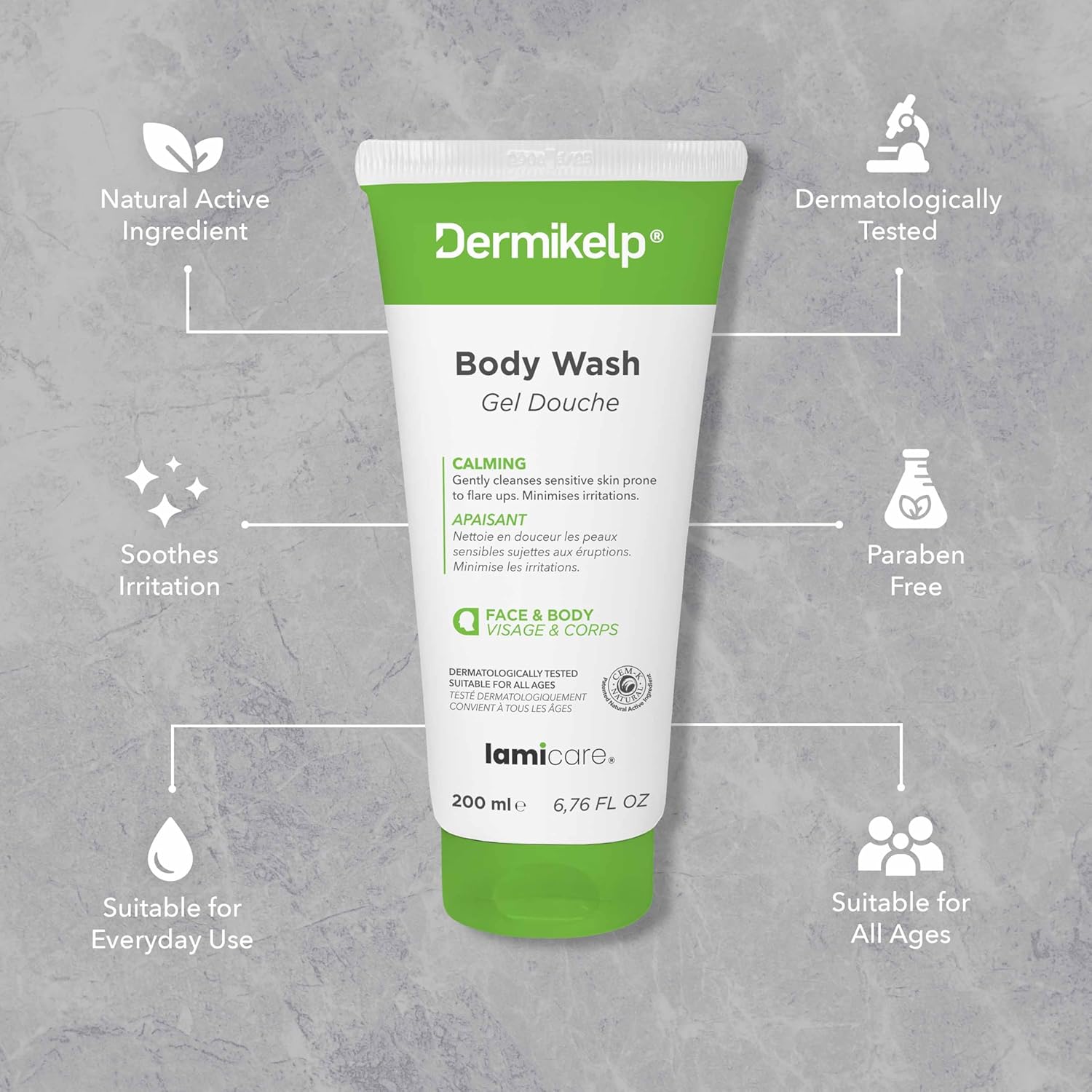 Dermikelp® Body Wash For Sensitive Skin – Gently Cleanses And Soothes With Cem-K Sea Kelp Extract, Paraben-Free, Suitable For Daily Use, 200Ml
