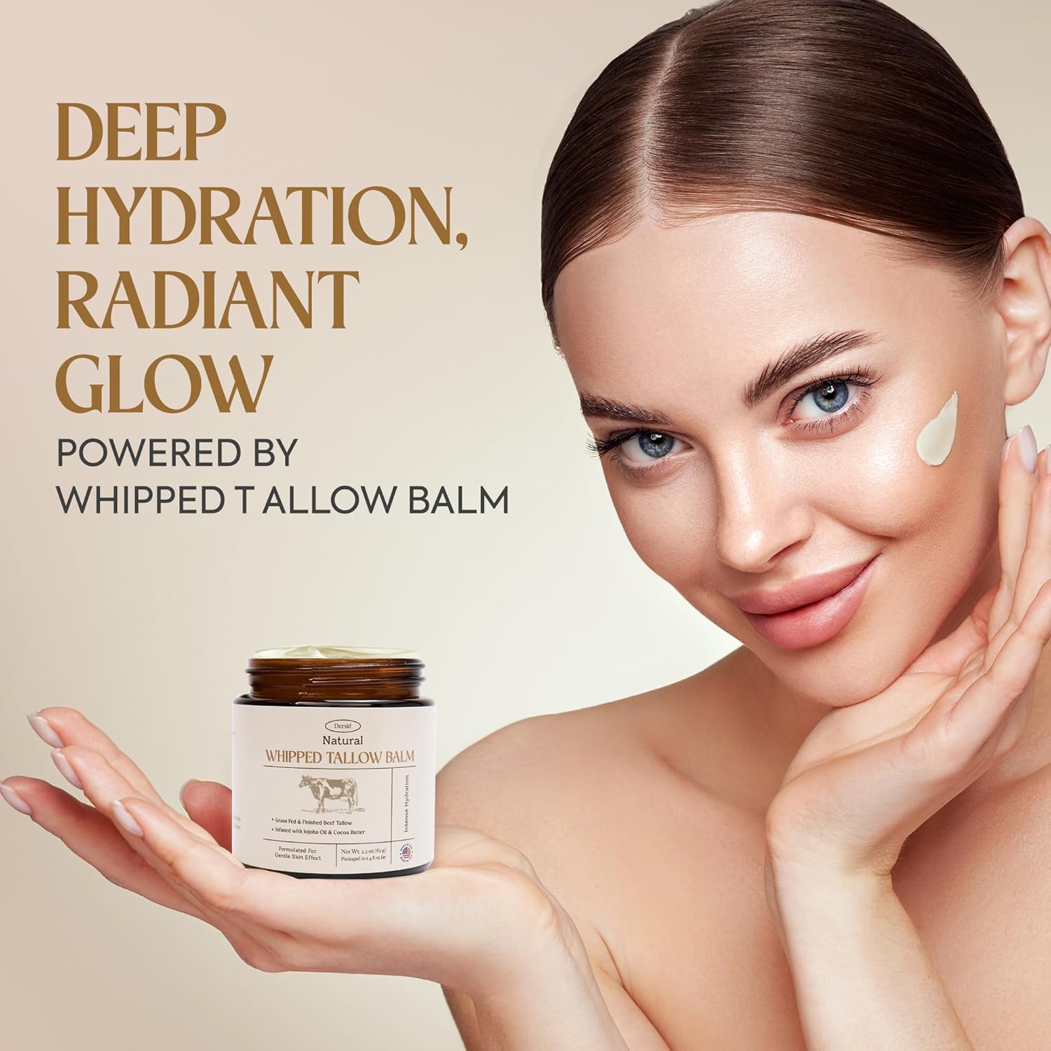 About this item Handmade in the USA: Every jar of Dersie Tallow Balm is lovingly handcrafted in small batches right here in the USA - designed to deliver freshness, purity, and gentle care you can trust for yourself and your family, including babies. 100% Organic & Natural Ingredients: Crafted with just three organic ingredients - grass-fed tallow, jojoba oil, and cocoa butter, this nourishing tallow balm delivers deep, natural hydration and soothing care - free from artificial additives and safe for even the most sensitive skin. 100% Grass Fed & Finished Tallow: Dersie Beef Tallow Balm use only 100% grass-fed, grass-finished beef tallow, rich in skin-replenishing vitamins A, D, E, and K, and essential fatty acids. These nutrients help nourish, repair, and protect the skin barrier naturally. Whipped Tallow for Fast Absorption: The light, whipped texture of Dersie Tallow Balm spreads easily and melts into the skin without greasy residue. Perfect for face, body, hands, and delicate areas, it offers effortless hydration with a soft, natural finish. Safe for All Ages & Skin Types: Gentle and natural, this tallow balm is perfect for men, women, kids, and seniors. Suitable for dry, oily, sensitive, mature, or combination skin - ideal for the whole family. ?Texture Reminder?Mild graininess may occur from cocoa butter in its natural form. Simply rub gently and it will melt into the skin, without impacting the balm’s quality or effectiveness. › See more product details,Handmade in the USA: Every jar of Dersie Tallow Balm is lovingly handcrafted in small batches right here in the USA - designed to deliver freshness, purity, and gentle care you can trust for yourself and your family, including babies,100% Organic & Natural Ingredients: Crafted with just three organic ingredients - grass-fed tallow, jojoba oil, and cocoa butter, this nourishing tallow balm delivers deep, natural hydration and soothing care - free from artificial additives and safe for even the most sensitive skin,100% Grass Fed & Finished Tallow: Dersie Beef Tallow Balm use only 100% grass-fed, grass-finished beef tallow, rich in skin-replenishing vitamins A, D, E, and K, and essential fatty acids. These nutrients help nourish, repair, and protect the skin barrier naturally,Whipped Tallow for Fast Absorption: The light, whipped texture of Dersie Tallow Balm spreads easily and melts into the skin without greasy residue. Perfect for face, body, hands, and delicate areas, it offers effortless hydration with a soft, natural finish,Safe for All Ages & Skin Types: Gentle and natural, this tallow balm is perfect for men, women, kids, and seniors. Suitable for dry, oily, sensitive, mature, or combination skin - ideal for the whole family,?Texture Reminder?Mild graininess may occur from cocoa butter in its natural form. Simply rub gently and it will melt into the skin, without impacting the balm’s quality or effectiveness