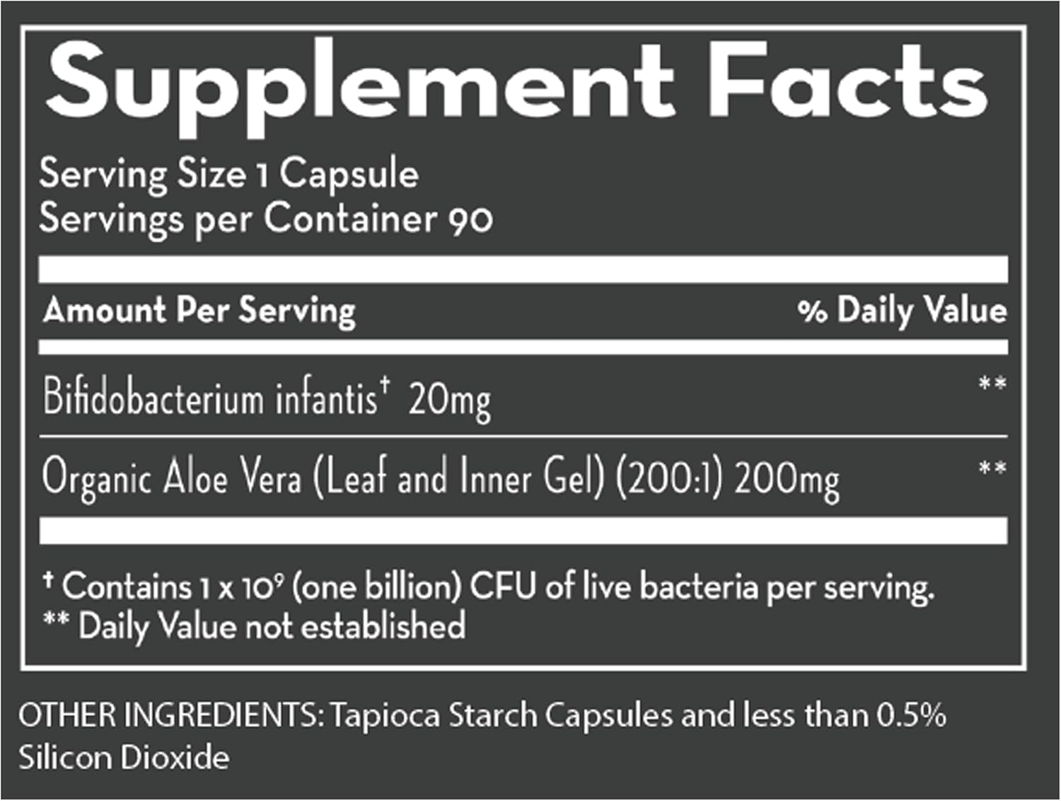 BIOAVAILABLE SUPPORT: Naturally helps fortify the digestive system with Bifidobacterium infantis and restores the natural balance of good bacteria in the intestines to support daily wellness. The addition of active Aloe Vera additionally enhances bioavailability