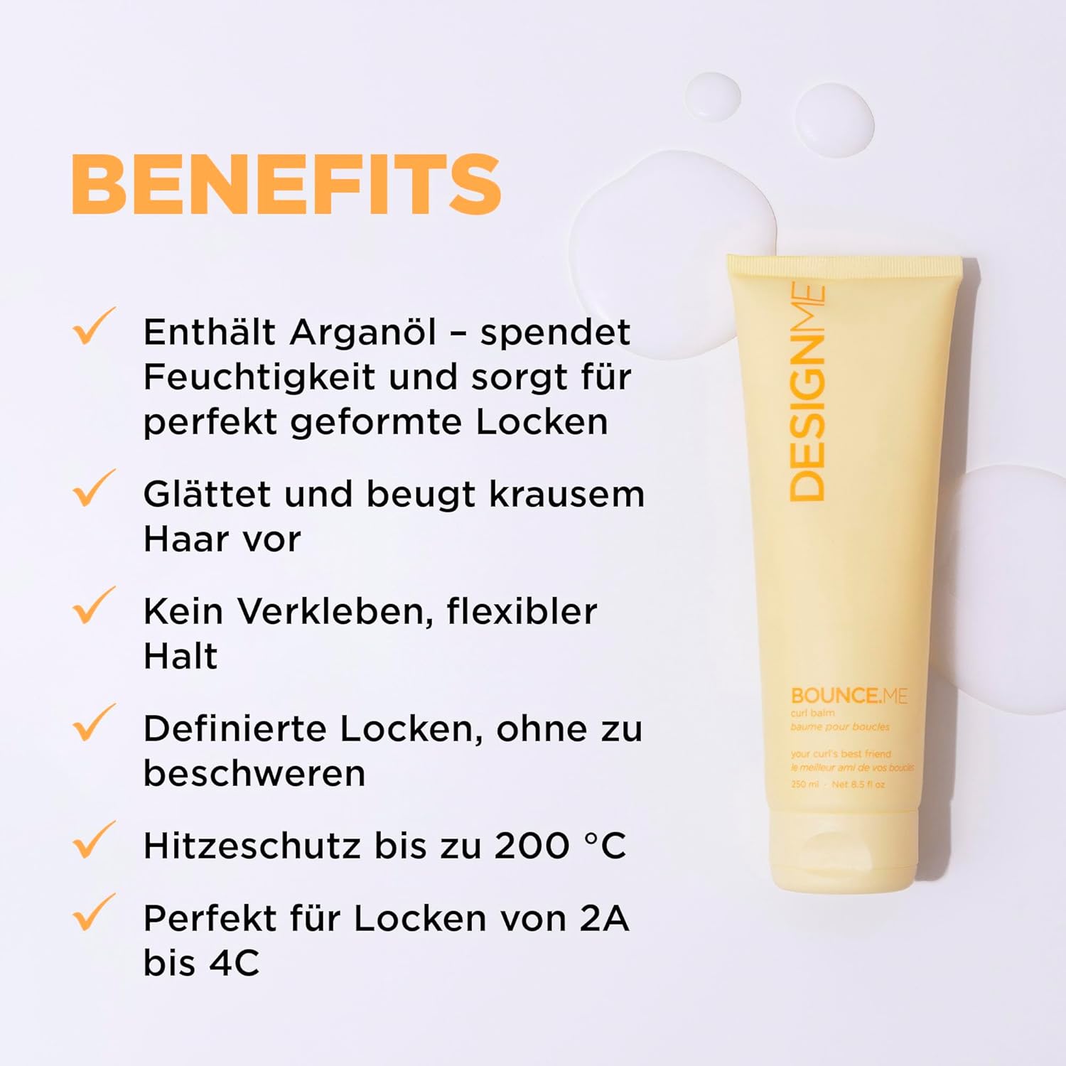 Design.Me BOUNCE.ME Curl Balm and Cream for Curly Hair with Nourishing Argan Oil | Wave, Coil, and Curl Defining Cream | Sulfate Free and Paraben Free (8.5 Fl Oz)