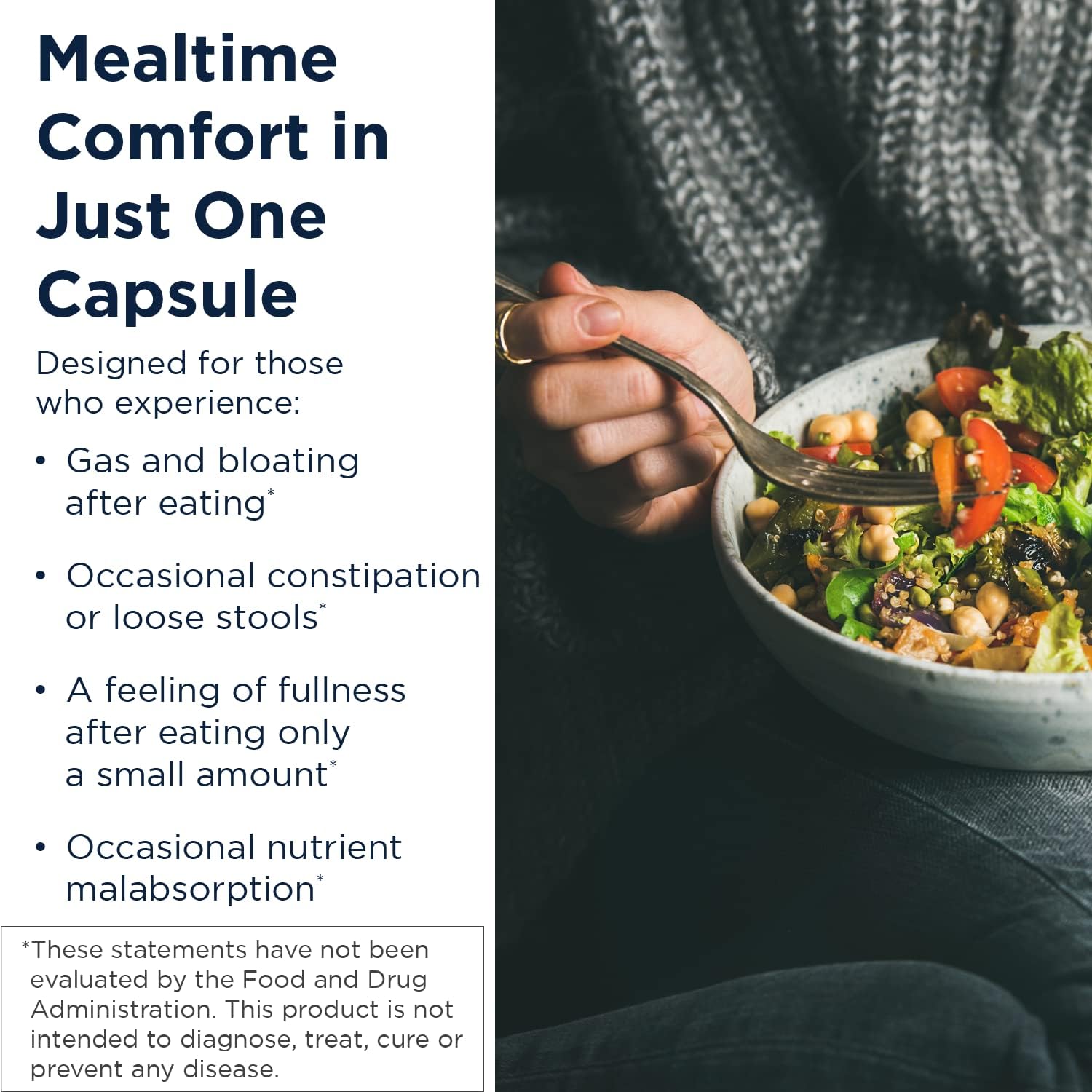Occasional Gas or Bloating After Meals Enzymes for digestion may be helpful for those experiencing occasional gas after eating, constipation, or a feeling of fullness after eating only a small quantity of food.* The use of Digestzyme before meals may offer occasional mild bloating relief. Take one digestion supplement capsule before meals to support digestive gut health