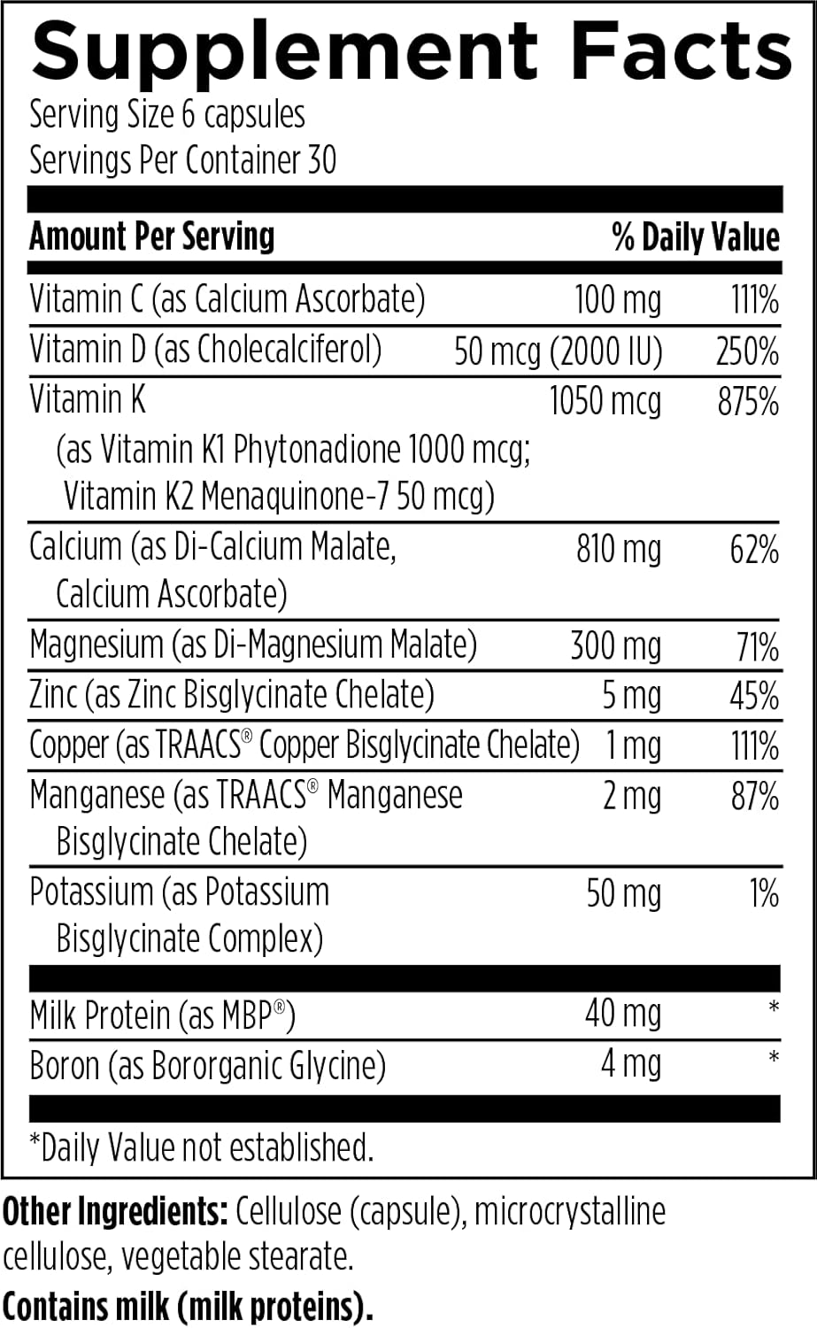 Unique Ingredient - MBP is a multifunctional, natural protein present in trace amounts in human and bovine milk whose main role is to assist the body in its ability to support bone