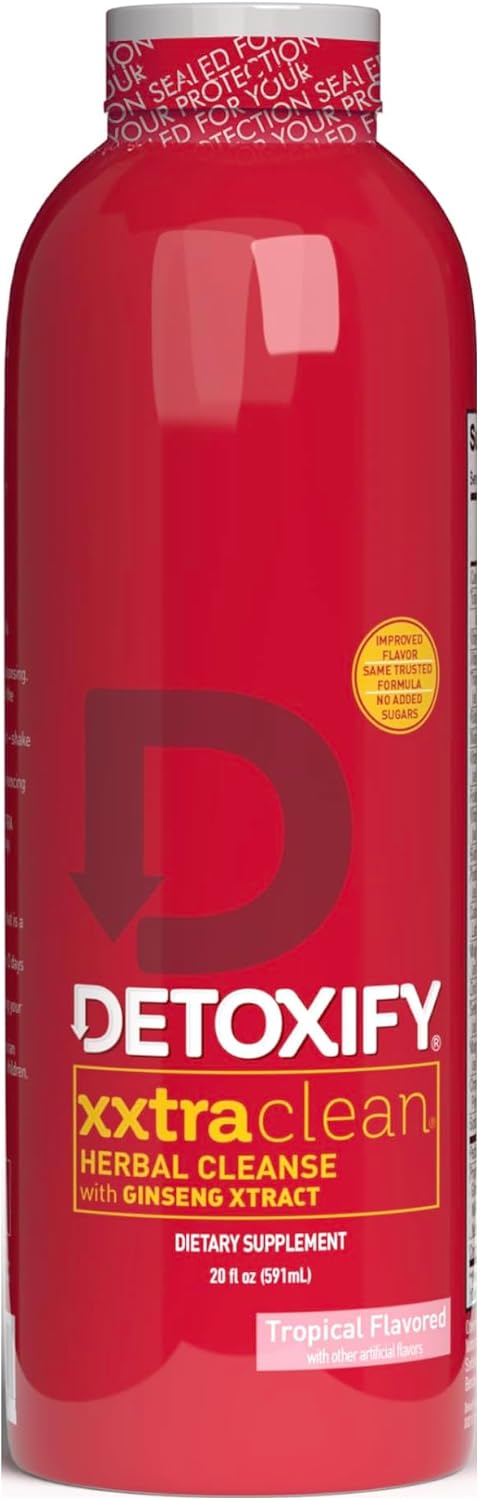 Detoxify – Xxtra Clean Herbal – Tropical Fruit Flavor - 20 Oz – Professionally Formulated Extra Strength Herbal Detox Drink – Enhanced With Ginseng Extract & Milk Thistle Extract - Plus Sticker