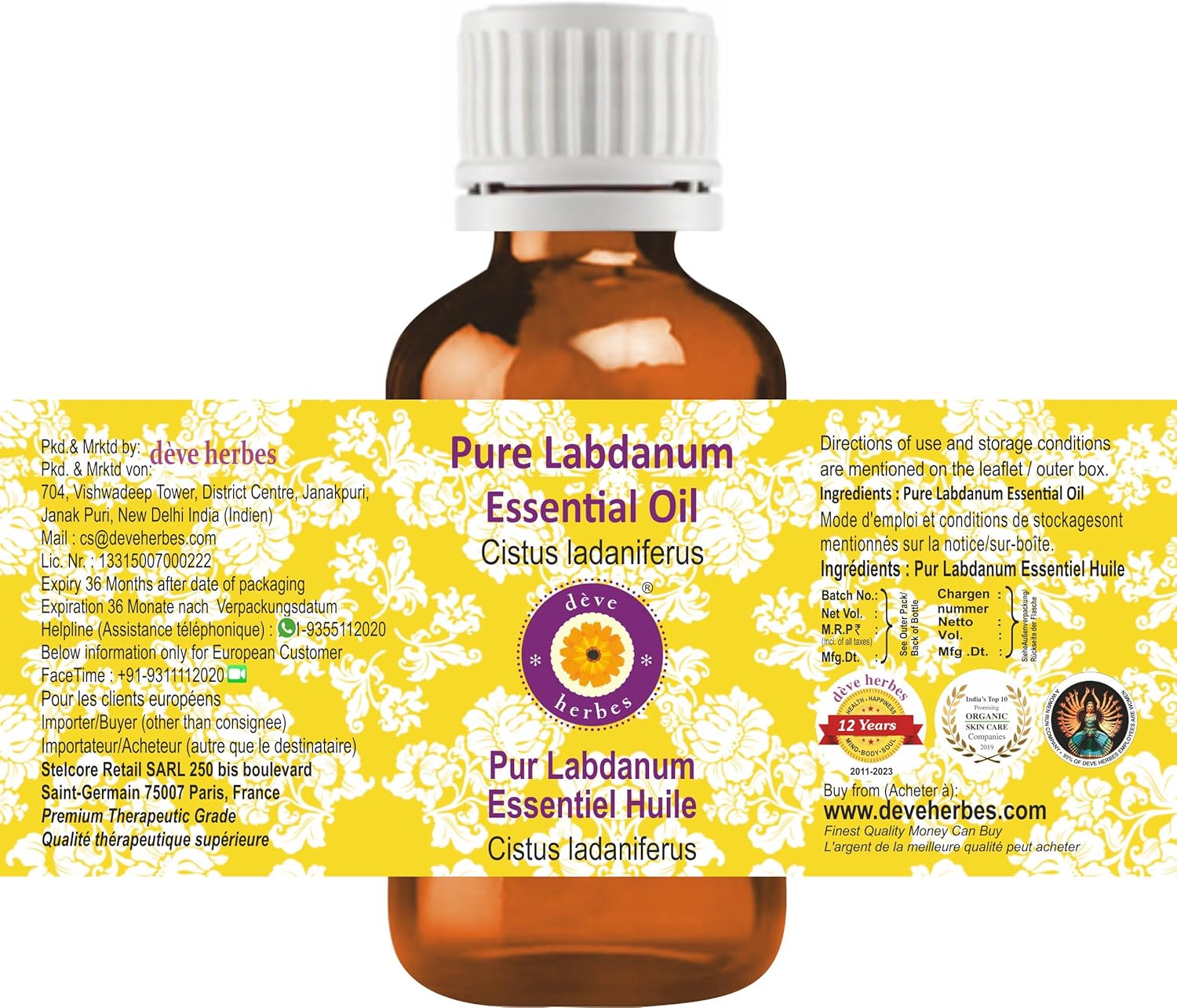 Quantity - 10ml (0.33 oz), Container Type - High Quality Amber Glass Bottle designed to preserve potency. Method of Extraction - Steam Distillation, Botanical Name -Cistus ladaniferus, Daily skin care Regimen, Lightweight, Non-greasy, Non-sticky, For all seasons