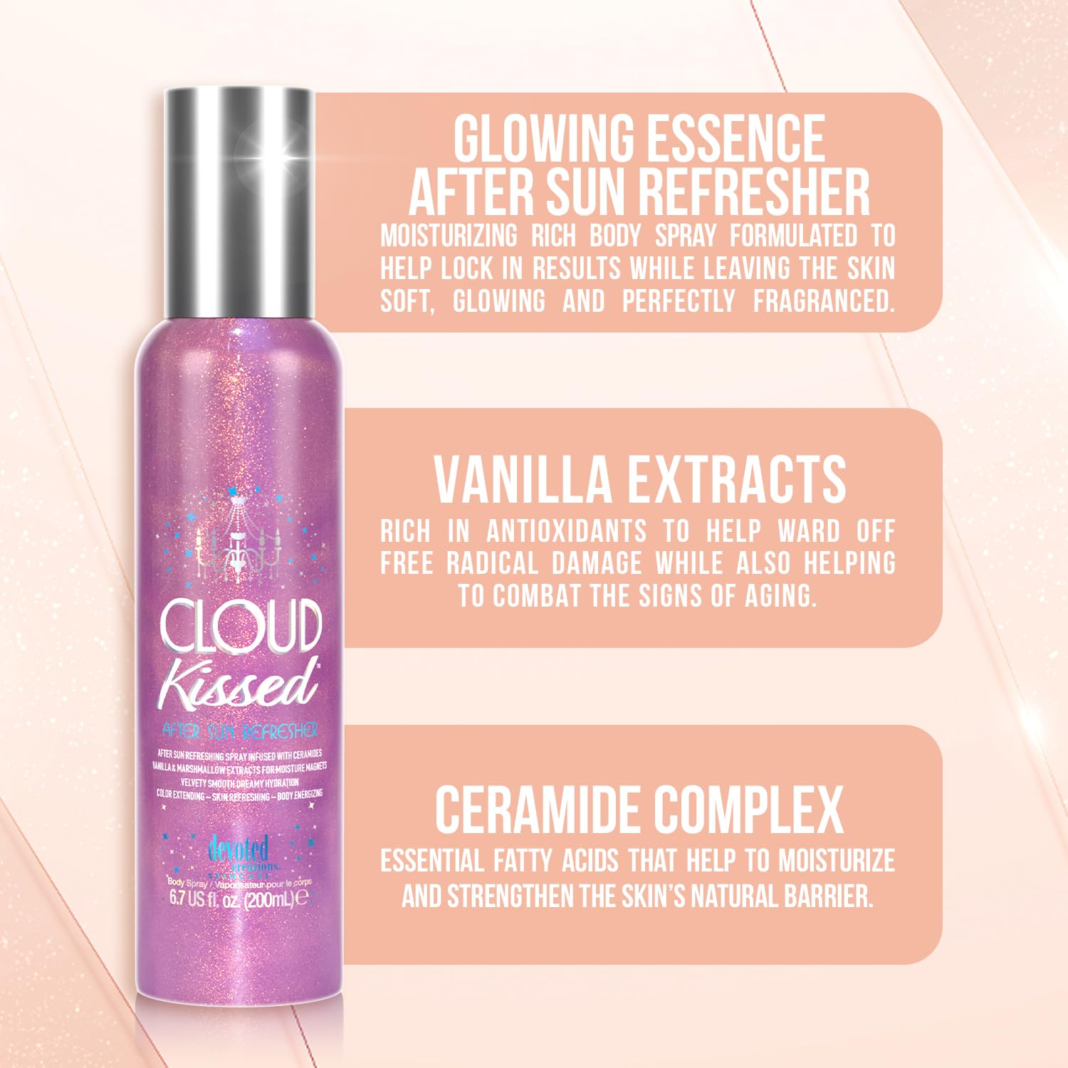 Devoted Creations Cloud Kissed After Sun Refresher - Color Extending – Skin Refreshing – Body Energizing Velvety Smooth Dreamy Hydration Body Spray