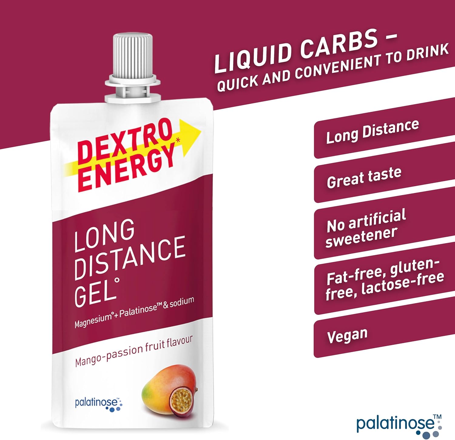 Dextro Energy Long Distance Gel Mango & Passion Fruit | Fast And Long-Lasting Energy Supply | Developed For Intensive, Long Endurance Exercise | Easy To Consume Continuous Carbohydrates | Pack Of 12