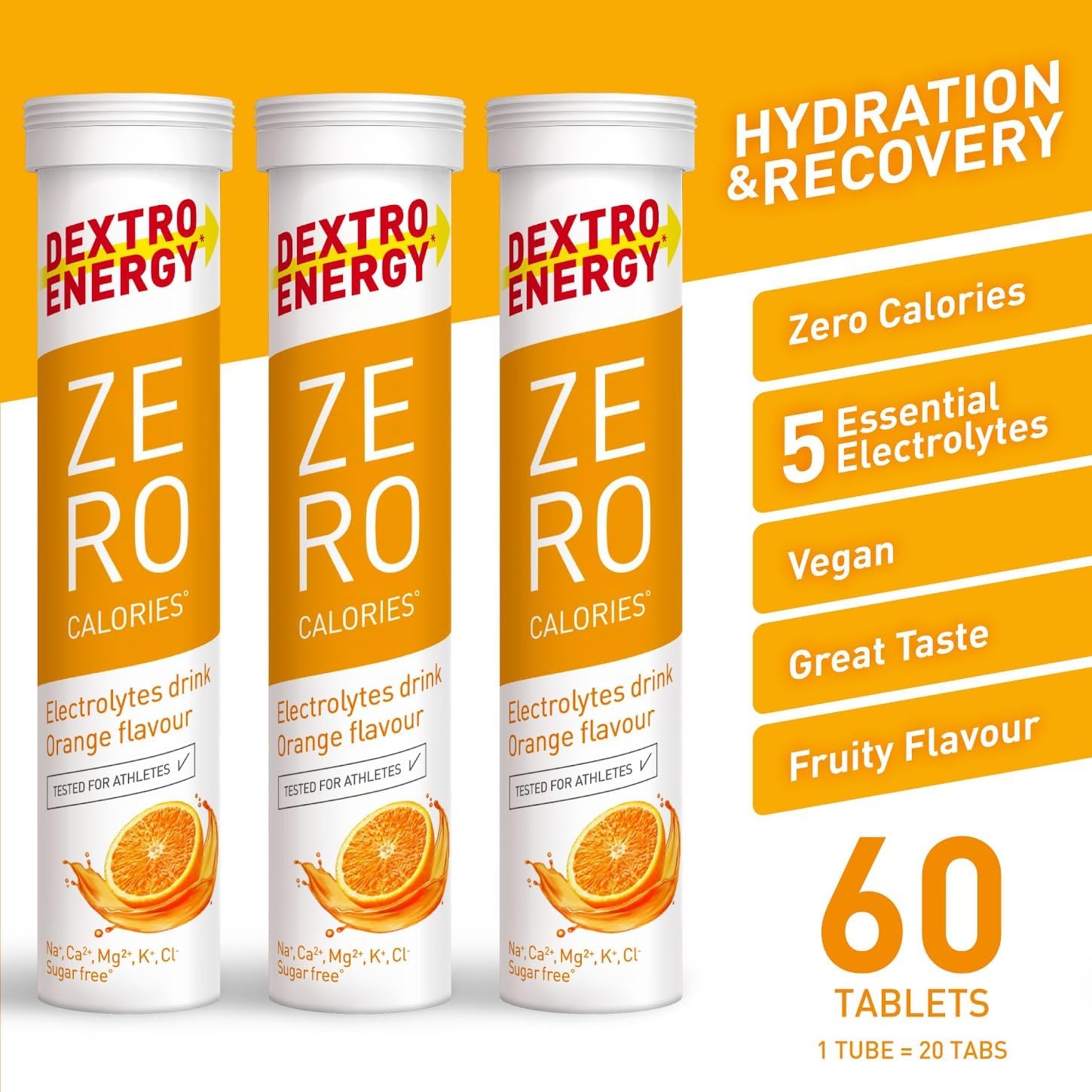 Dextro Energy Zero Calories I Recovery And Hydration Electrolyte Drink I Zero Effervescent Tablets I Berry | 3 Tubes, 60 Tablets |
