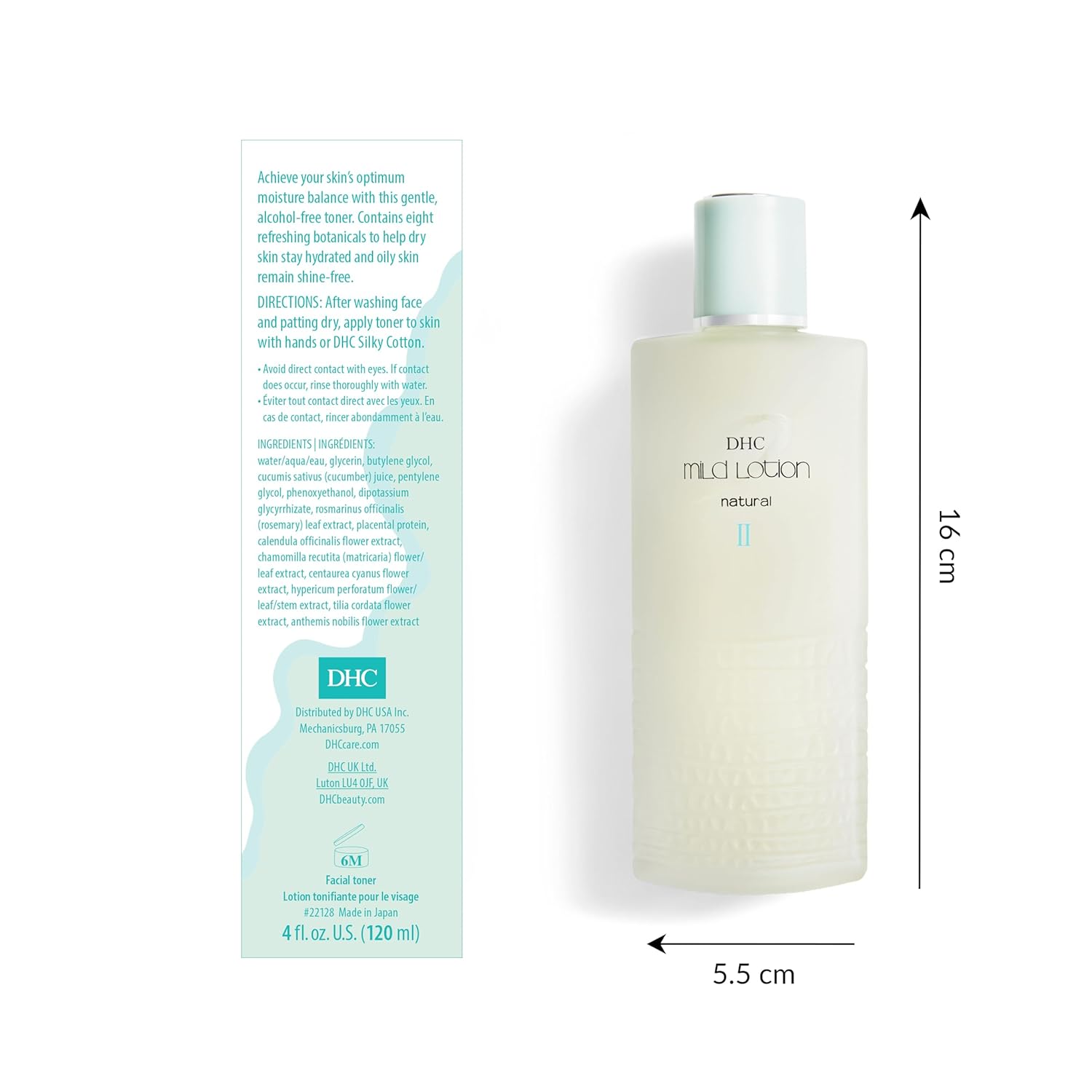 About this item DHC's Mild Lotion is a hydrating liquid lotion for sensitive skin that prepares skin to receive the maximum benefits from moisturizers. Moisturizing and revitalzing alcohol-free formula that hydrates, tones, and refreshes the skin. Alcohol-free and is formulated with cucumber juice extract and licorice to calm and soothe sensitive skin. Humectant-rich glycerin protects skin’s natural moisture barrier. Liquid Lotion is considered an essential step in the traditional Japanese skincare regimen, preparing your skin to get the maximum benefits from your moisturizer. Mild Lotion is a great third step of the Japanese 4 step regimen. Fragrance-free and colorant-free. Ideal for all skin types. › See more product details,DHC's Mild Lotion is a hydrating liquid lotion for sensitive skin that prepares skin to receive the maximum benefits from moisturizers,Moisturizing and revitalzing alcohol-free formula that hydrates, tones, and refreshes the skin,Alcohol-free and is formulated with cucumber juice extract and licorice to calm and soothe sensitive skin. Humectant-rich glycerin protects skin’s natural moisture barrier,Liquid Lotion is considered an essential step in the traditional Japanese skincare regimen, preparing your skin to get the maximum benefits from your moisturizer. Mild Lotion is a great third step of the Japanese 4 step regimen,Fragrance-free and colorant-free. Ideal for all skin types