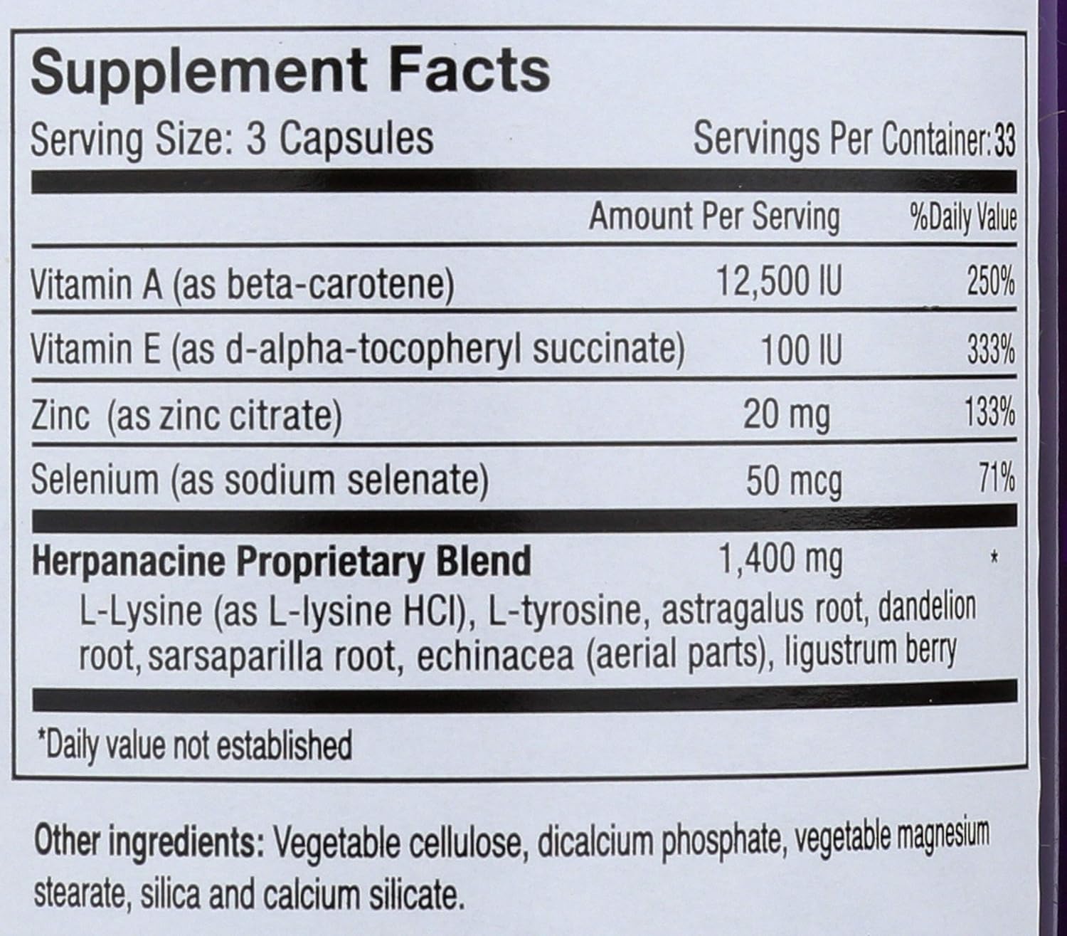 Package Dimensions : 4.46 x 2.53 x 2.53 inches Product Benefits Cardiovascular Health.herpanacine Age Range (Description) Adult Dosage Form Capsule Color 1
