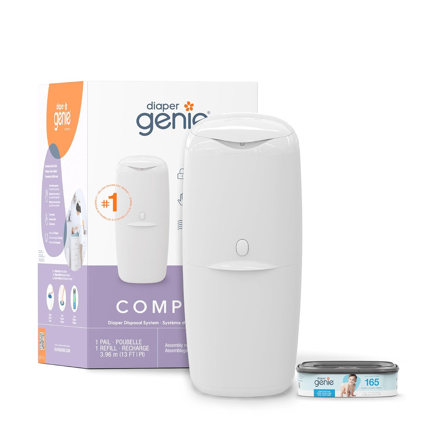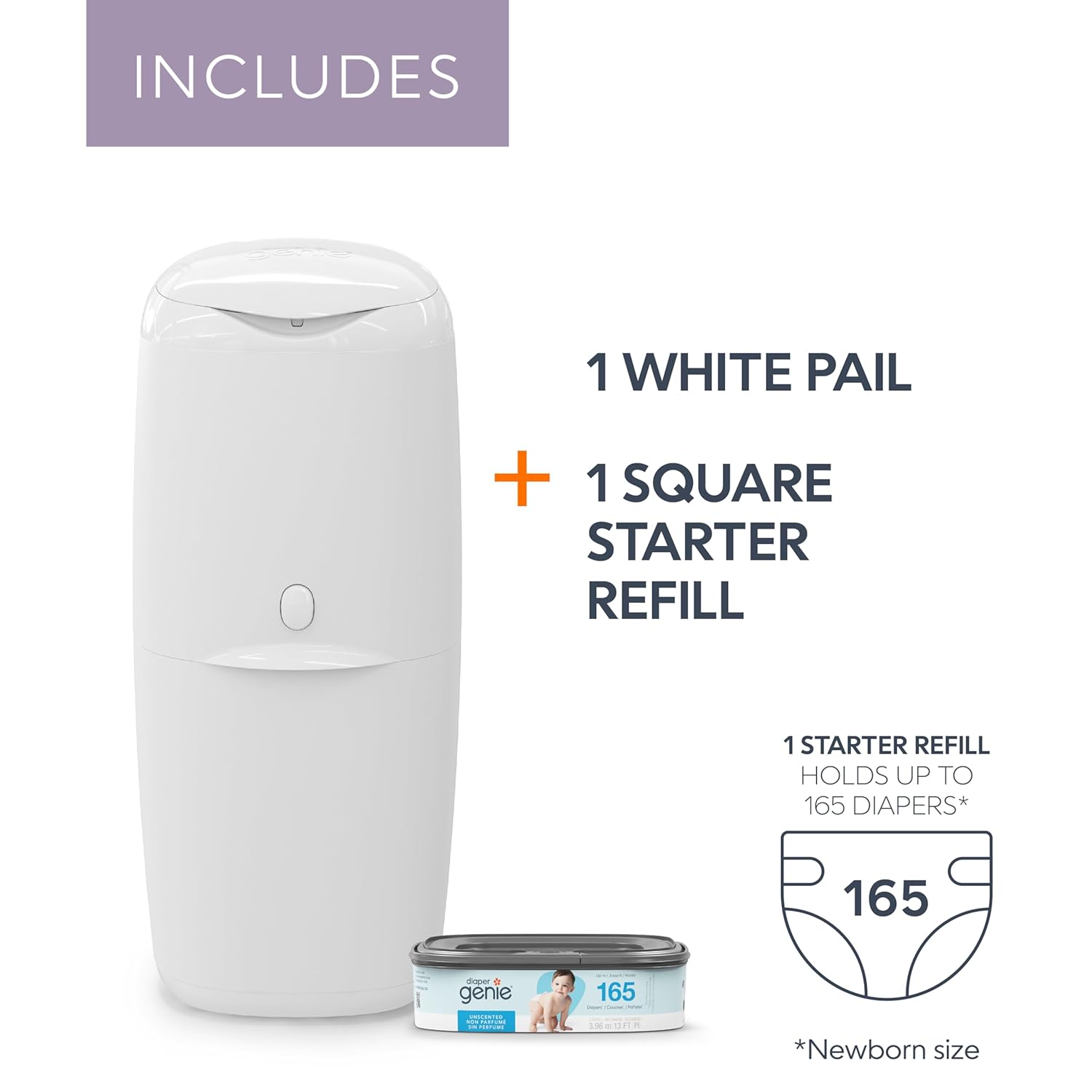 Diaper Genie Compact Pail Includes 1 Starter Square Refill That Can Hold Up To 165 Newborn-Sized Diapers
