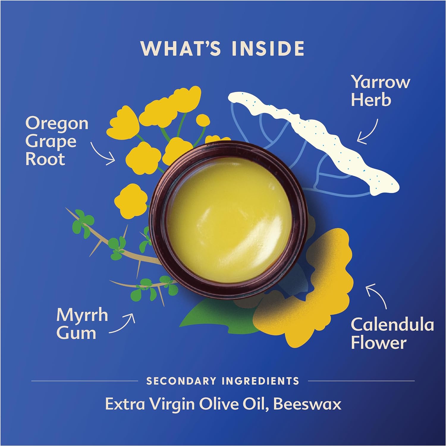 CLEAN INGREDIENTS: Extra virgin olive oil, beeswax, Oregon grape root, myrrh gum, yarrow herb, calendula flower. All natural and organic. Nothing else