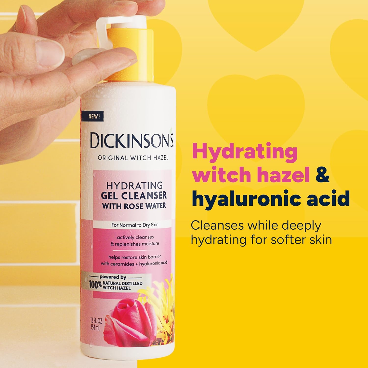 Dickinson'S Original Witch Hazel Hydrating Gel Facial Cleanser With Rose Water, 12 Fl Oz, For Normal To Dry Skin, Hydrates And Nourishes Skin, Helps Calm Redness, Alcohol-Free Face Wash