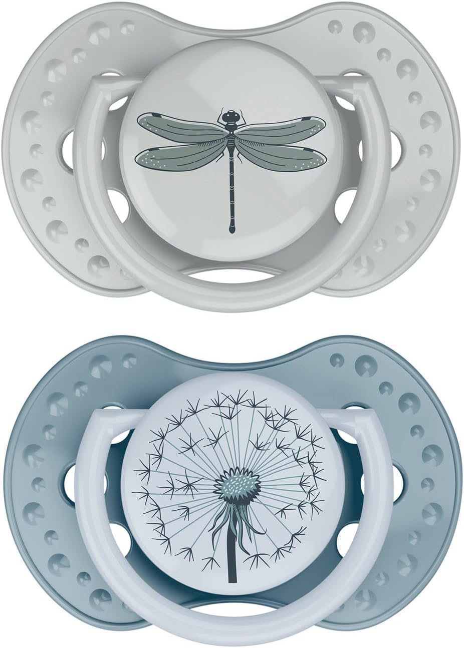 About this item DIFRAX Lovi has developed a collection: special dynamic dummies that mimic the mother's nipple. The dummy tip of the dummy is dynamic: and consists of several layers of silicone of different thicknesses. Thanks to these layers, the tip of the teat moves in the natural suction rhythm. Your baby can breathe freely: through the nose thanks to the special shield. The optimal airflow provides better skin protection. The dummy grows with age: the smaller sizes are softer and become firmer with age. Available sizes are: Newborn, 0-3 months, 3-6 months, 6-18 months and 18+ months. The pacifiers are packed in pairs and you will receive a transparent storage box to keep them hygienic. › See more product details,DIFRAX Lovi has developed a collection: special dynamic dummies that mimic the mother's nipple,The dummy tip of the dummy is dynamic: and consists of several layers of silicone of different thicknesses. Thanks to these layers, the tip of the teat moves in the natural suction rhythm,Your baby can breathe freely: through the nose thanks to the special shield. The optimal airflow provides better skin protection,The dummy grows with age: the smaller sizes are softer and become firmer with age. Available sizes are: Newborn, 0-3 months, 3-6 months, 6-18 months and 18+ months,The pacifiers are packed in pairs and you will receive a transparent storage box to keep them hygienic