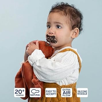 SPECIALLY DESIGNED - The Difrax Natural dummy is the only dummy with a unique butterfly shape that clears the nose. This allows your baby to breathe freely and reduces the chances of skin irritation around the mouth. NATURAL SHAPE: The dummy has a natural shape that resembles that of a nipple, providing great comfort for your baby and facilitating the transition between breastfeeding and bottling. Silicone Part: Silicone material is more hygienic and safe than natural rubber. Silicone is also famous for its strength, durability and no odor. SUITABLE FOR DIFFERENT AGE RANGES: The Difrax Natural dummy is available in different sizes suitable for different ages of babies. This allows you to adapt the dummy to the needs and development of your baby. Available in different variations: Difrax Natural soothers are available in a wide range of colours, patterns and sizes. Thus, there is something for every taste, matching the preferences and style of parents and baby,Color: Brown lollipop with lines,You will receive 2 pacifiers,For babies aged 20+ months