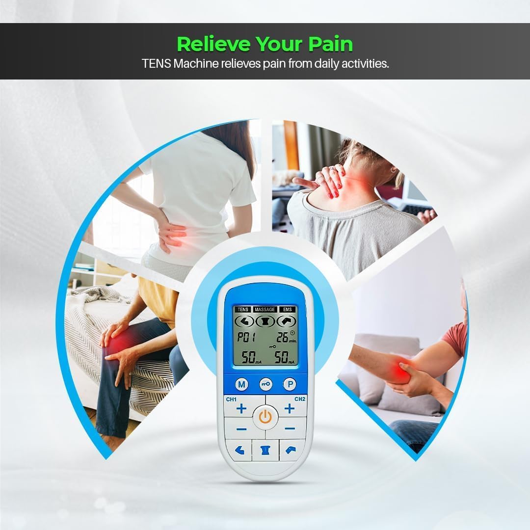 Digital Tens And Ems Machine | Drug-Free Natural Pain Relief | 3-In-1 Pain Relief, Rehabilitation And Massage | Dual Channel | 4-Self Adhesive Electrodes | Healthcare World
