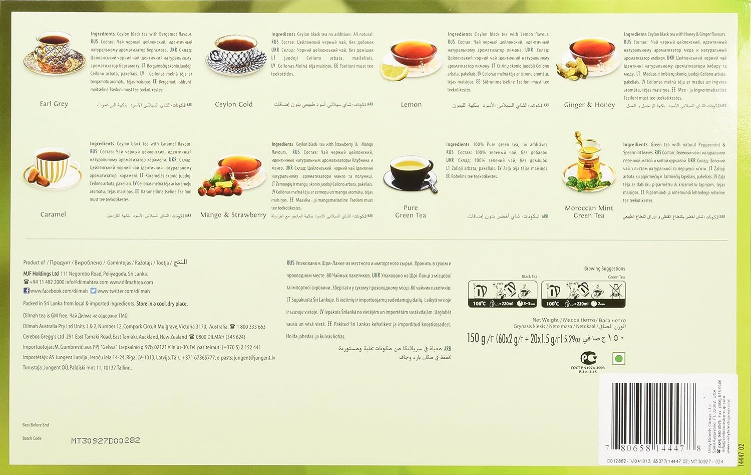 Dilmah, Gift Of Tea, Illuminations Green Pack, 80 Ct, 8 Varieties Of Individually Foil Wrapped Tea Bags In A Gift Box, (Pack Of 1)