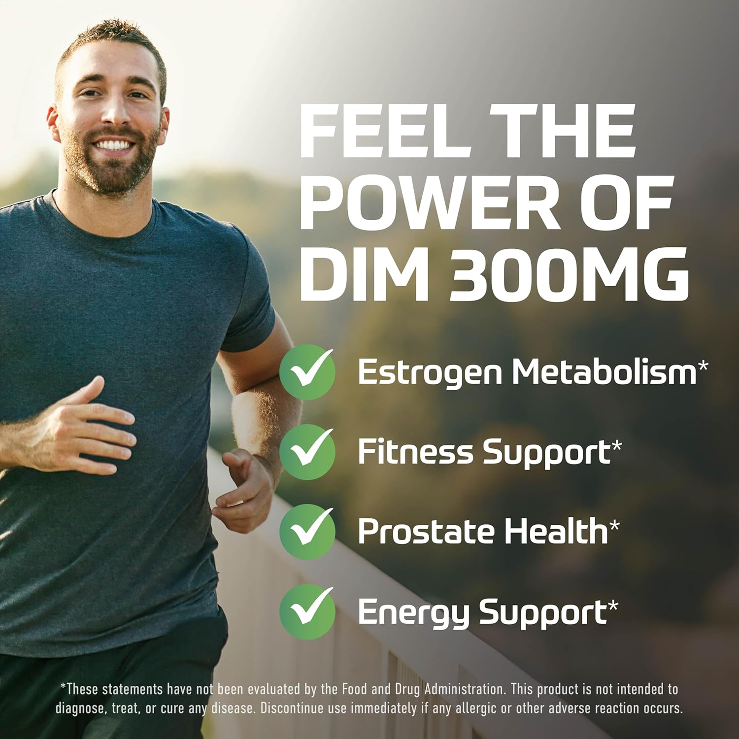 Dim 300Mg For Men, Estrogen Blocker & Aromatase Inhibitor | Extra Strength Men’S Hormone Balance & Fitness Booster Supplement With Diindolylmethane Plus Cdg & Sulforaphane | Gluten-Free | 60 Capsules