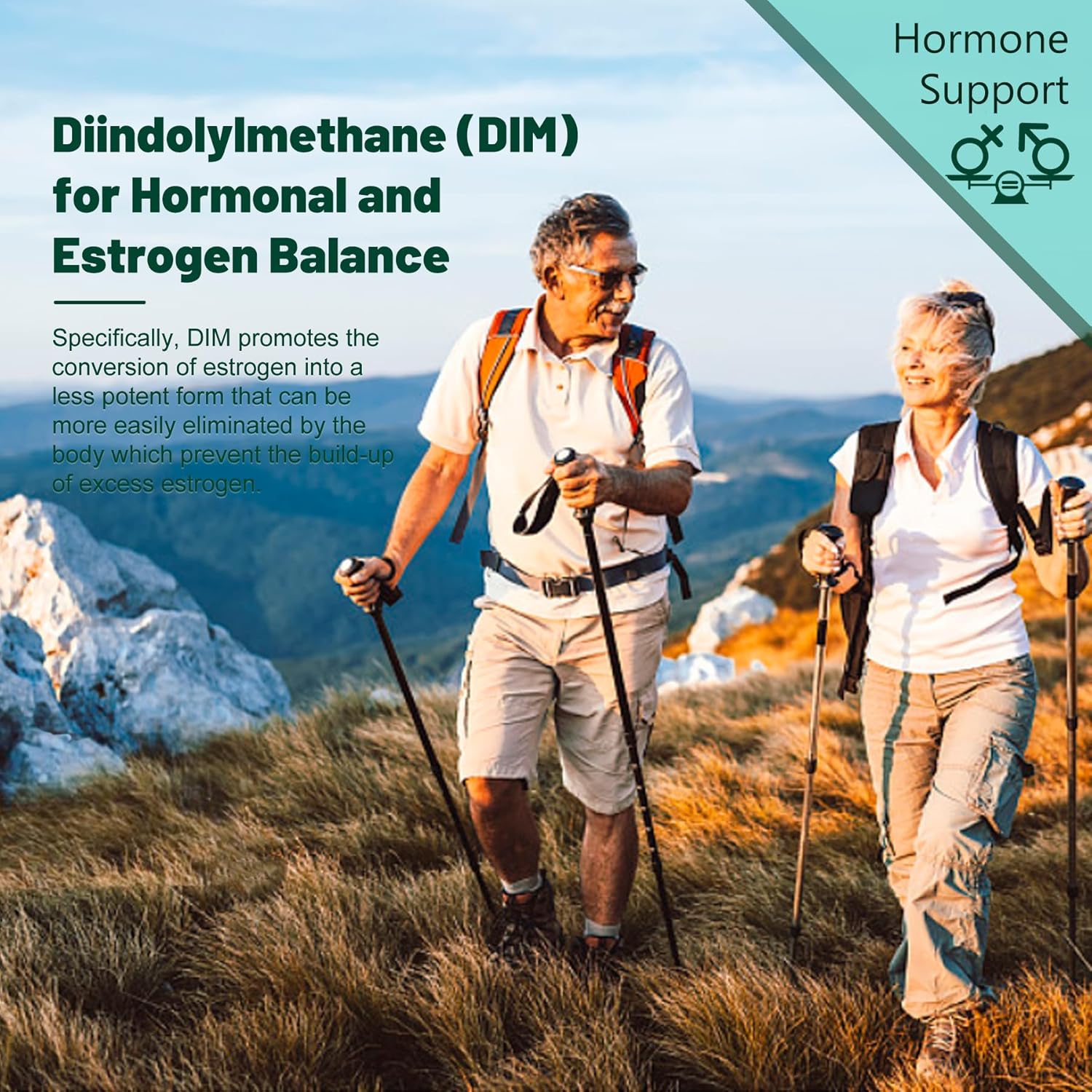 HORMONAL & ESTROGEN BALANCE: DIM (Diindolylmethane) is a fantastic supplement when it comes to balancing hormones, fighting estrogen dominance and detoxifying the liver. Our DIM complex supplement to support the body in dealing with excess estrogen to help hormone balance,as an estrogen supplement for women,support PMS and menopause, and relieve discomforts such as hot flashes, night sweats, and mood swings caused by hormonal imbalance