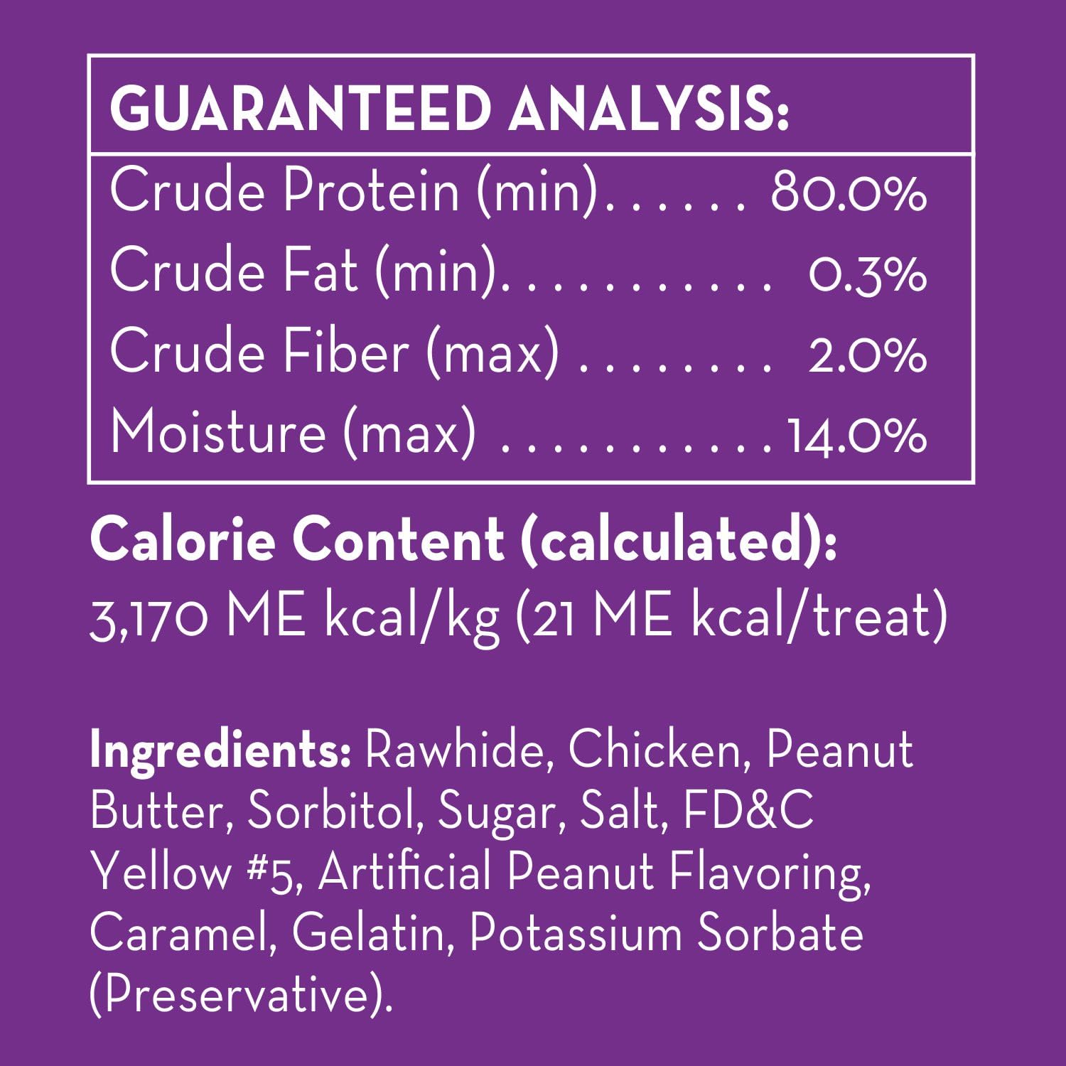 Made With Real Peanut Butter: Dingo Twist Sticks With Peanut Butter Are An Irresistible Combination Of Beef Hide, Chicken And Real Peanut Butter That Will Have Your Pup’S Tail Wagging10Promotes Clean Teeth: Each Chew Promotes Clean Teeth Through The Natural Abrasive Action Of Chewing10Twist-Shaped Chews: These Twist Sticks Make A Great Snack For All Dogs10Great Source Of Protein: Each Chew Is A Great Source Of Protein For Your Pup10Dingo Brand Chew: Combines Powerful Flavors And Benefits For Irresistibly Tasty Treats That Dogs Love10Dingo® Brand’S Real Peanut Butter And Rawhide Combinations Deliver Delicious Chews To Promote Clean Teeth Due To The Natural Abrasive Action Of Chewing. This Premium Rawhide Chew Is Available In A Wide Variety Of Irresistibly Tasty Treats That Dogs Love. Dingo Twist Sticks With Peanut Butter Are An Irresistible Combination Of Real Chicken Wrapped With Premium Rawhide And Real Peanut Butter For A Flavor That Will Have Your Dog'S Tail Wagging For More. These Twists Are A Great Source Of Protein That You Can Feel Good About Giving Your Furry Friend. Also Promotes Clean Teeth From The Natural Abrasive Action Of Chewing. Give Your Dog A Fun-Shaped Chew With A Tasty Twist. Dingo Twist Sticks With Peanut Butter Are A Great Snack For All Dogs. This Resealable Package Contains 25 Twists. Give Your Dog Up To One Dingo Twist Sticks With Peanut Butter Per Day. For Supervised Consumption Only. Select A Chew Slightly Larger Than Your Pet’S Mouth. Discard Chunks Or Fragments. Always Provide Plenty Of Fresh Drinking Water And Visit Your Veterinarian Regularly. Dingo Brand Combines Powerful Flavors And Benefits To Create Bones, Chews And Treats That Are Sure To Keep You And Your Dog Wanting More. Shop Our Wide Variety Of Shapes And Flavors, With Options For Any Size Companion!