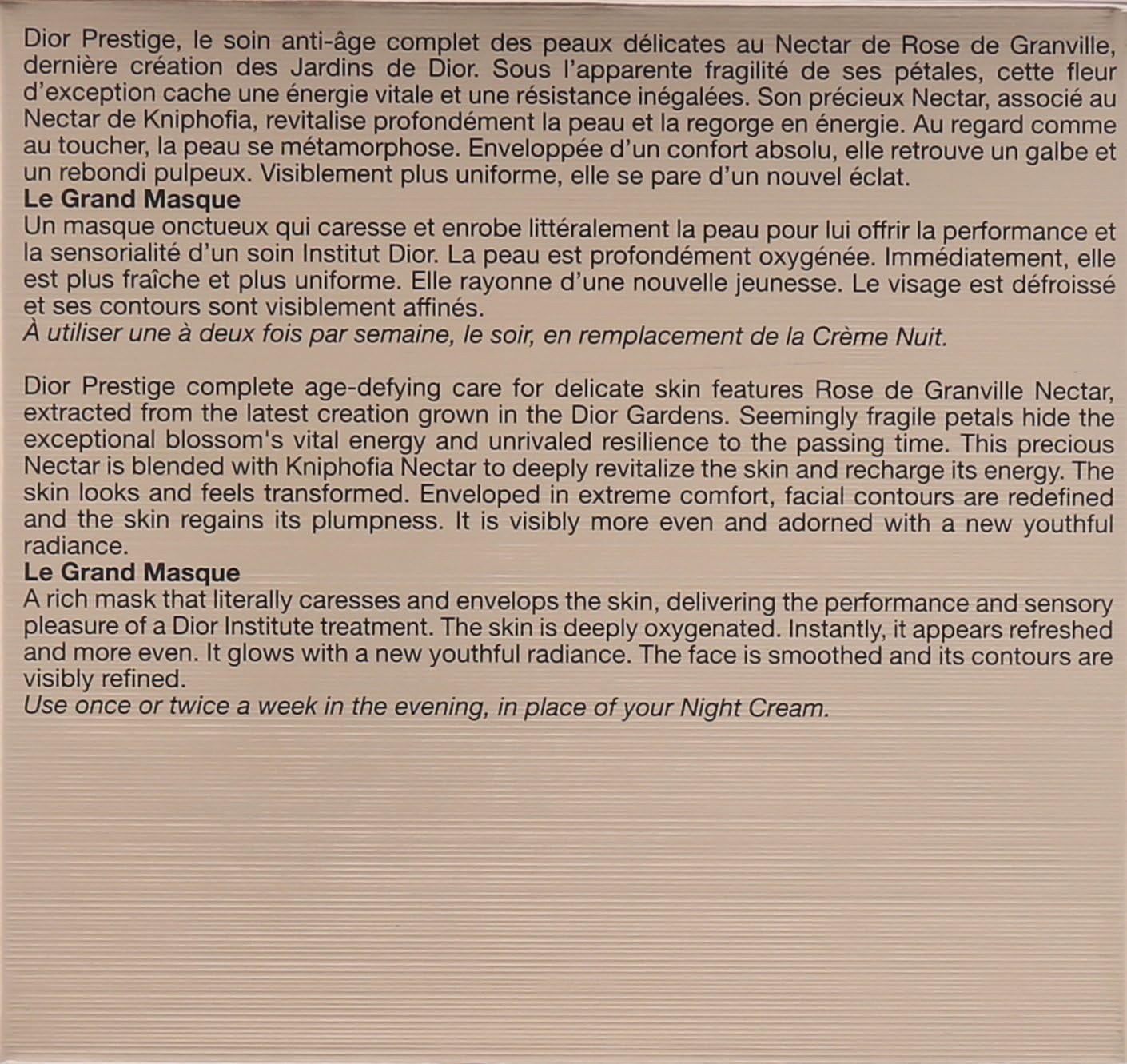 Dior Prestige Le Grand Masque 50 ml,A deeply re-oxygenating Cream Mask,Features a fine, soft & quick-penetrating texture