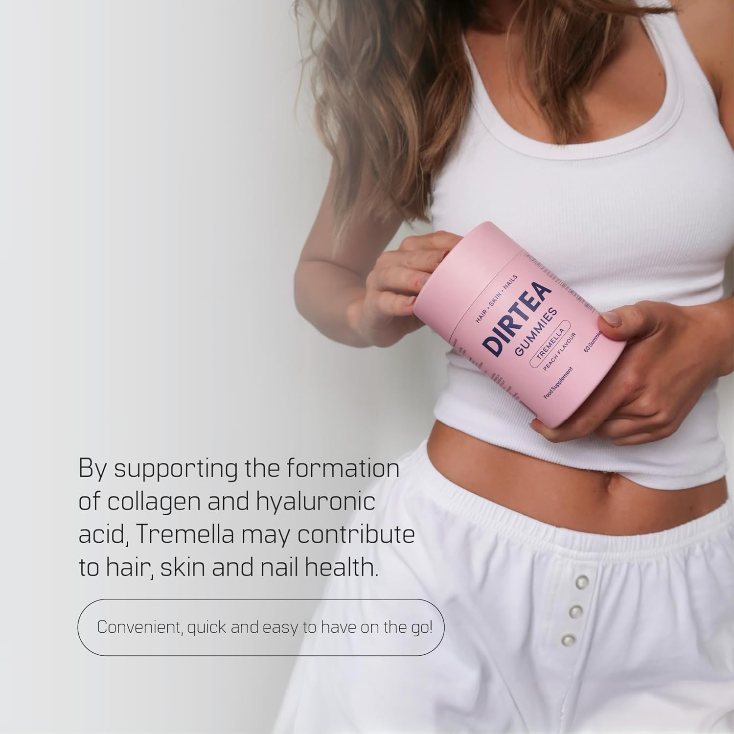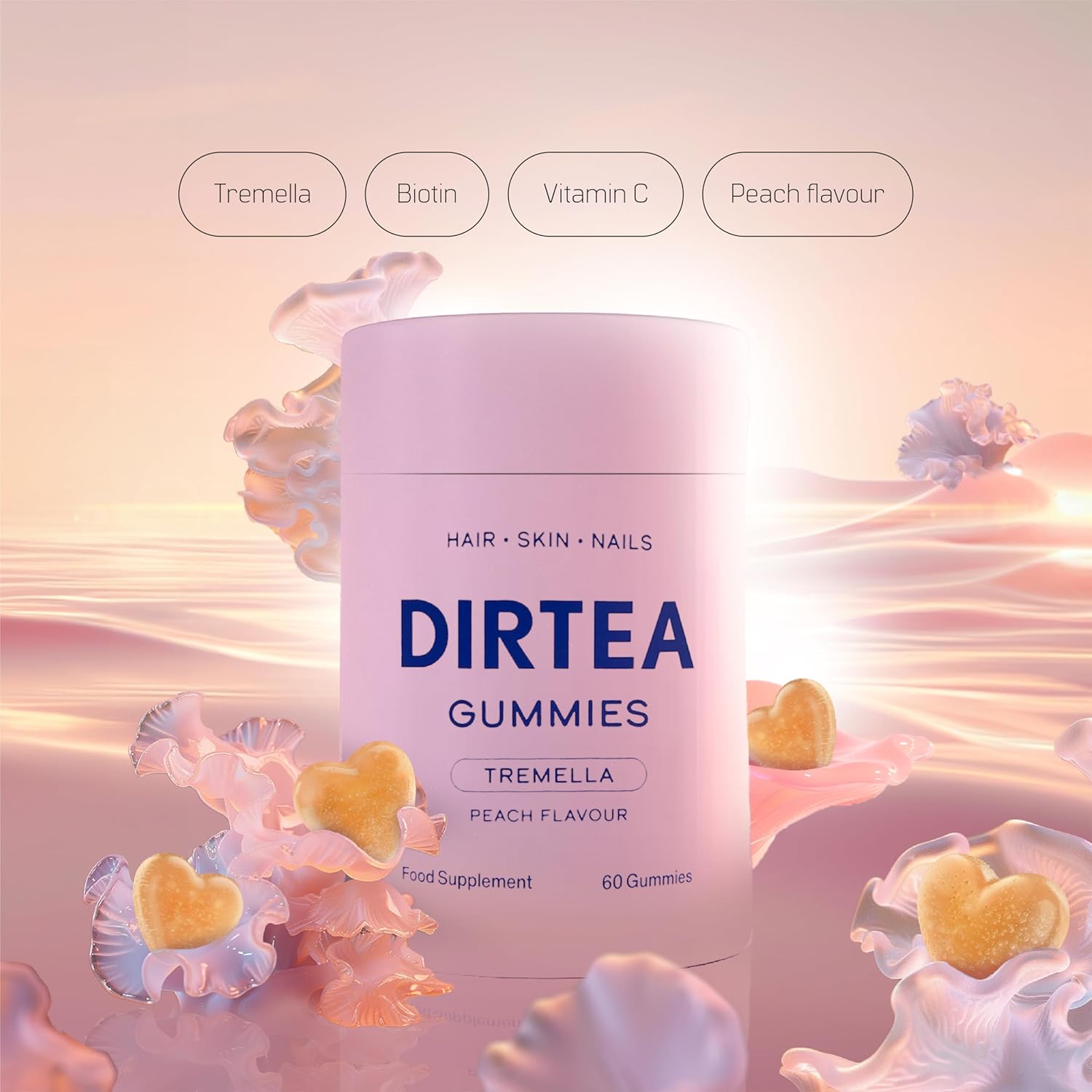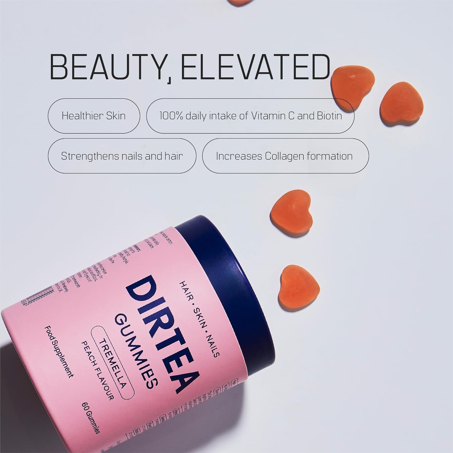Dirtea Tremella Mushroom Gummies With Biotin & Vitamin C - Hair, Nail & Skin Supplement - Vegan, Natural, Sugar-Free - 1 Month'S Supply - 3,000Mg Tremella Per Serving - 60 Gummies - Peach Flavour
