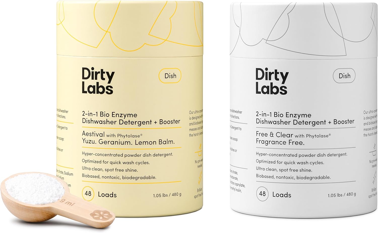Dirty Labs | Dishwasher Detergent & Booster 2-Pack Sampler | Aestival + Free & Clear | 96 Loads | Ultra Clean, Spot Free, Quick Wash Optimized | Hyper Concentrated