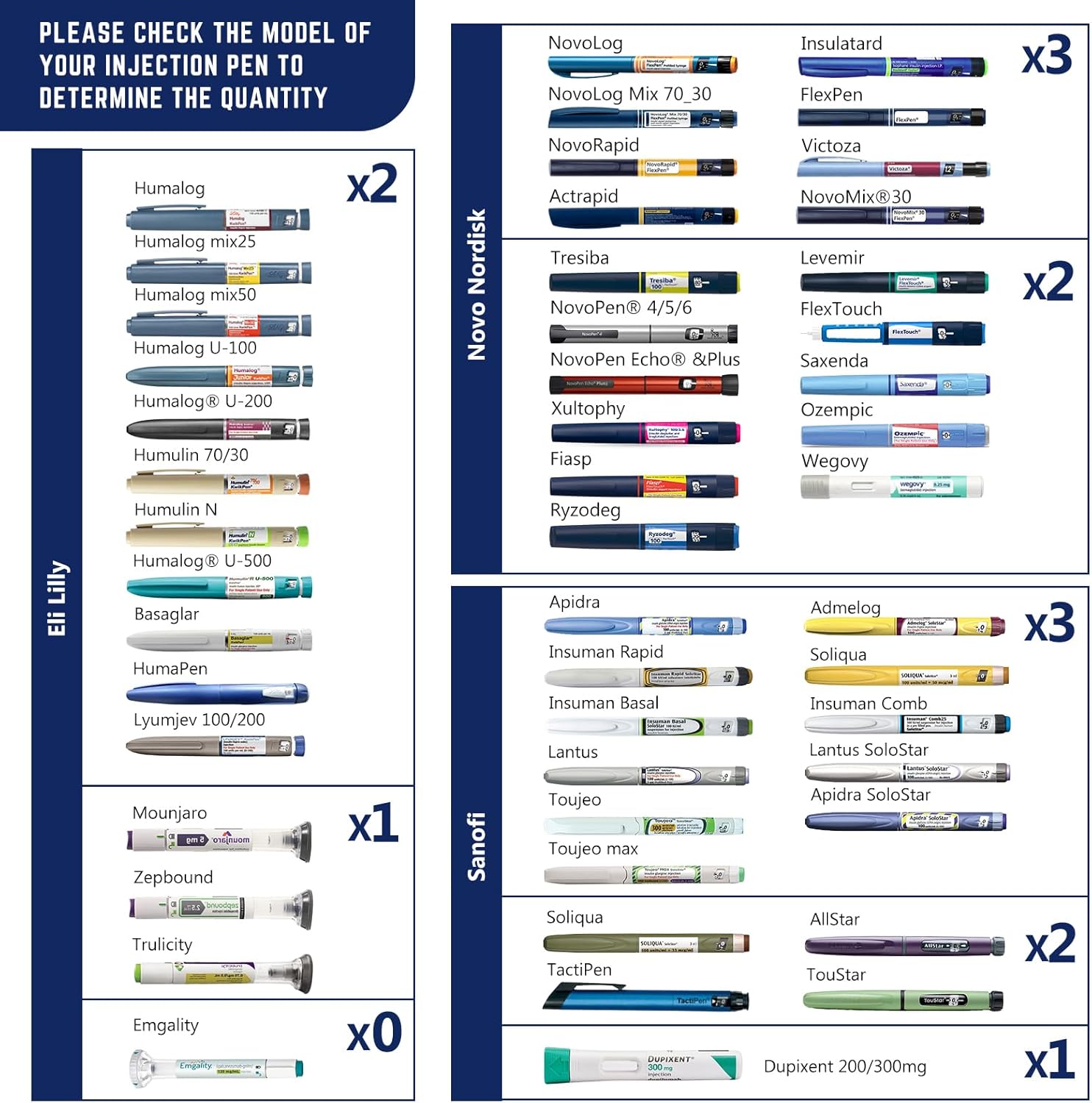 How Many Injection Pens Can I Put In : We Have Obtained The Sizes Of 95% Of The Common Brands Of Injection Pens On The Market And Made A Detailed Capacity Reference Chart. 1)You Can Find A Table On Our Page For Reference To Buy The Right Cooler. 2) If You Can'T Find Your Injection Pen Model, Please Be Sure To Contact Us, We Will Be Happy To Help You Solve Your Problem