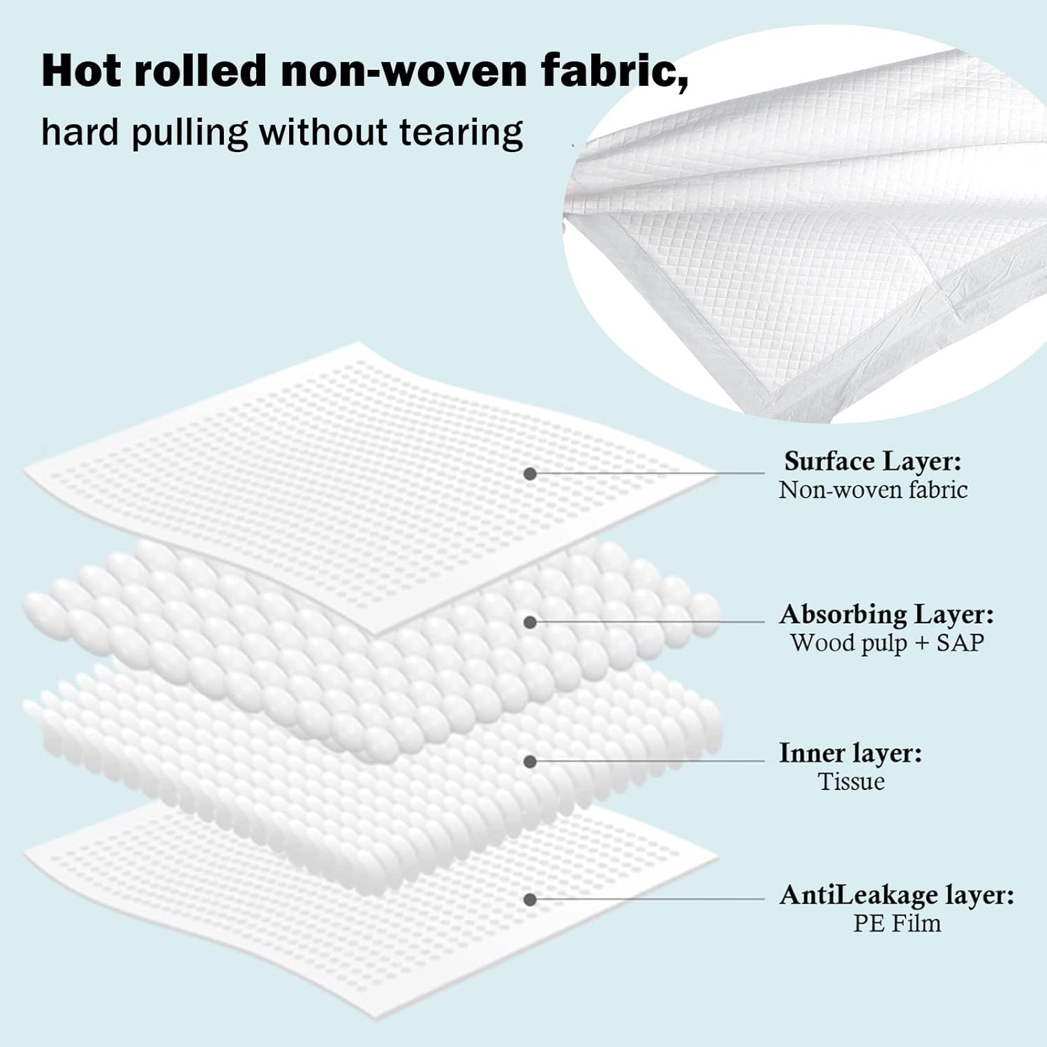 High Absorption: Our Disposable Changing Pad Liners Feature A Built-In Polymer Water-Absorbing Resin That Quickly And Safely Absorbs Liquids. With Strong Water Absorption Capacity, They Can Completely Absorb Liquid Within 2 Seconds, Helping To Prevent Odors And Keep Your Sheets And Bed Dry And Protected All Night