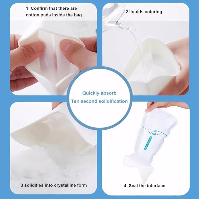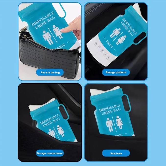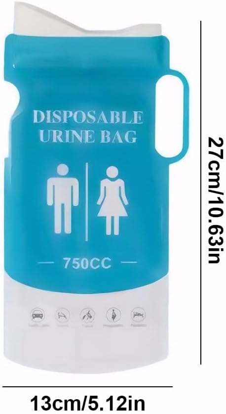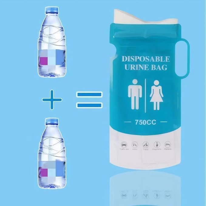 The Disposable Urine Bag for Travel offers a quick, sanitary, and hassle-free solution for emergencies when restrooms aren’t available. Each bag has a 750 ML capacity and features a secure, leak-proof seal with a super absorbent polymer that instantly turns liquid into gel, eliminating spills and odors. Designed for versatility, it serves as both a urinal and vomit bag, making it ideal for men, women, pregnant individuals, kids, and patients during travel, camping, hiking, or long car rides. Lightweight and compact, these bags easily fit into backpacks, glove compartments, or emergency kits—ensuring you're always prepared, no matter where you go.