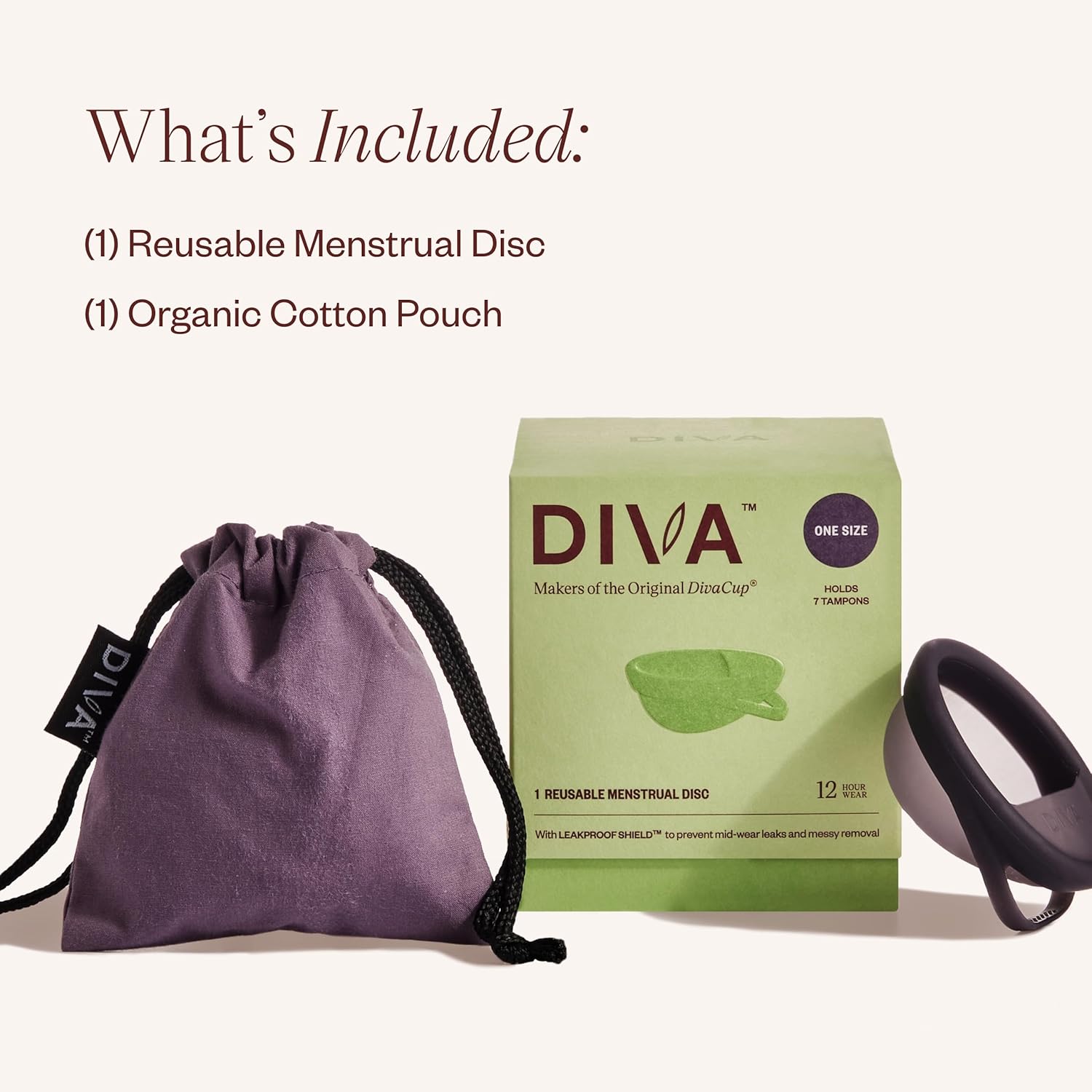 Diva Disc - Comfortable, Reusable Menstrual Disc With Leakproof Shield - For Up To 12 Hours Of Continuous Wear - 100% Medical Grade Silicone - Holds 7 Tampons Of Flow - One Size Fits Most