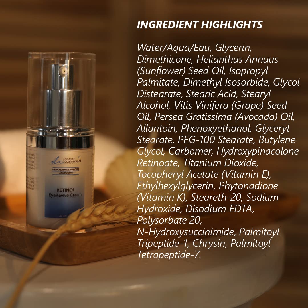 Doctor Cosmedical Retinol Eye Revive Cream | Under Eye Cream for Dark Circles & Puffiness | Anti-aging Eye Cream to Reduce Fine Lines & Wrinkles | 0.53 ounce / 15g