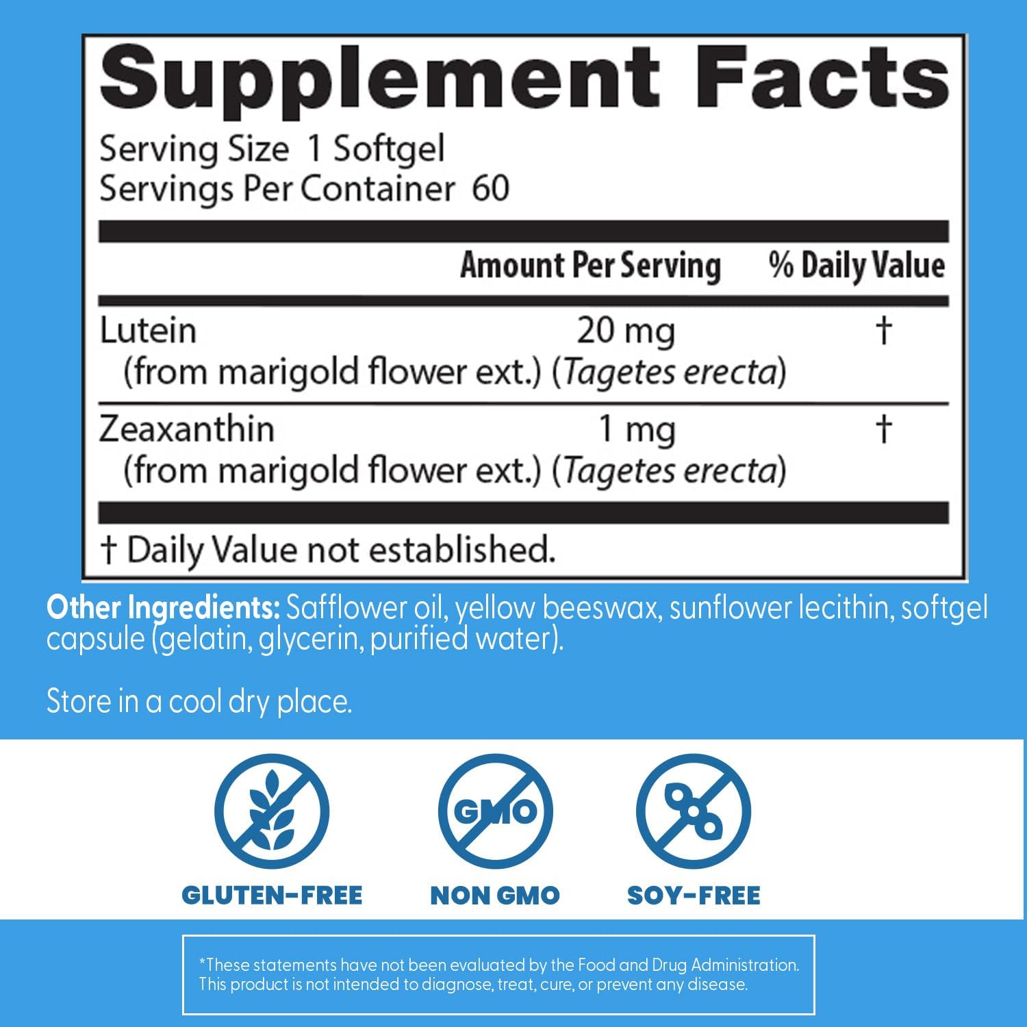 About this item Helps maintain healthy vision Helps promote sharper vision in low light Absorbs damaging blue light Helps support cognitive function Gluten Free › See more product details,Helps maintain healthy vision,Helps promote sharper vision in low light,Absorbs damaging blue light,Helps support cognitive function,Gluten Free