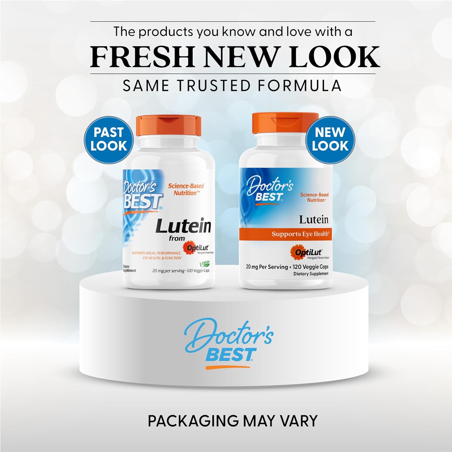 Doctors Best Lutein With Optilut, Supports Eye Health, Non-Gmo, Gluten Free, Soy Free, Vegan 120 Veggie Caps