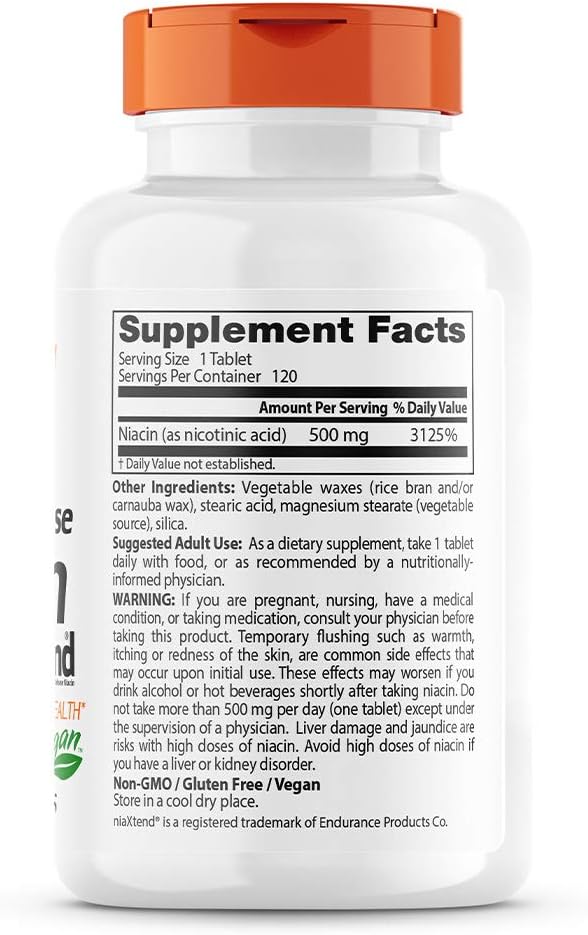 Doctor'S Best Timerelease Niacin With Niaxtend Nongmo Vegan Gluten Free 500 Mg Tablets, 120 Count
