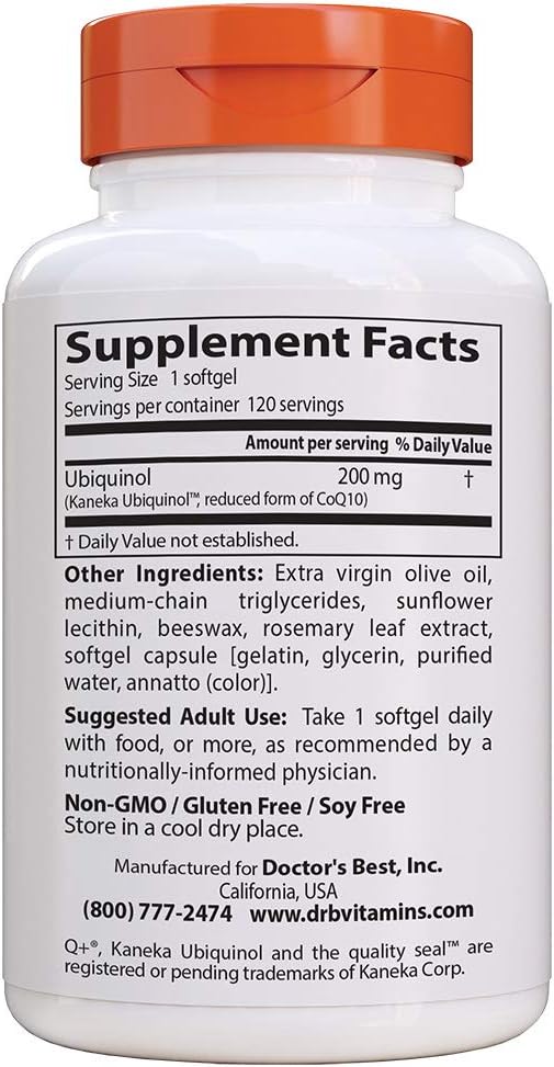 Doctor'S Best Ubiquinol With Kaneka Qh, Enhances Cellular Energy, Antioxidant, Non-Gmo, Gluten & Soy Free, 200 Mg, 120 Count