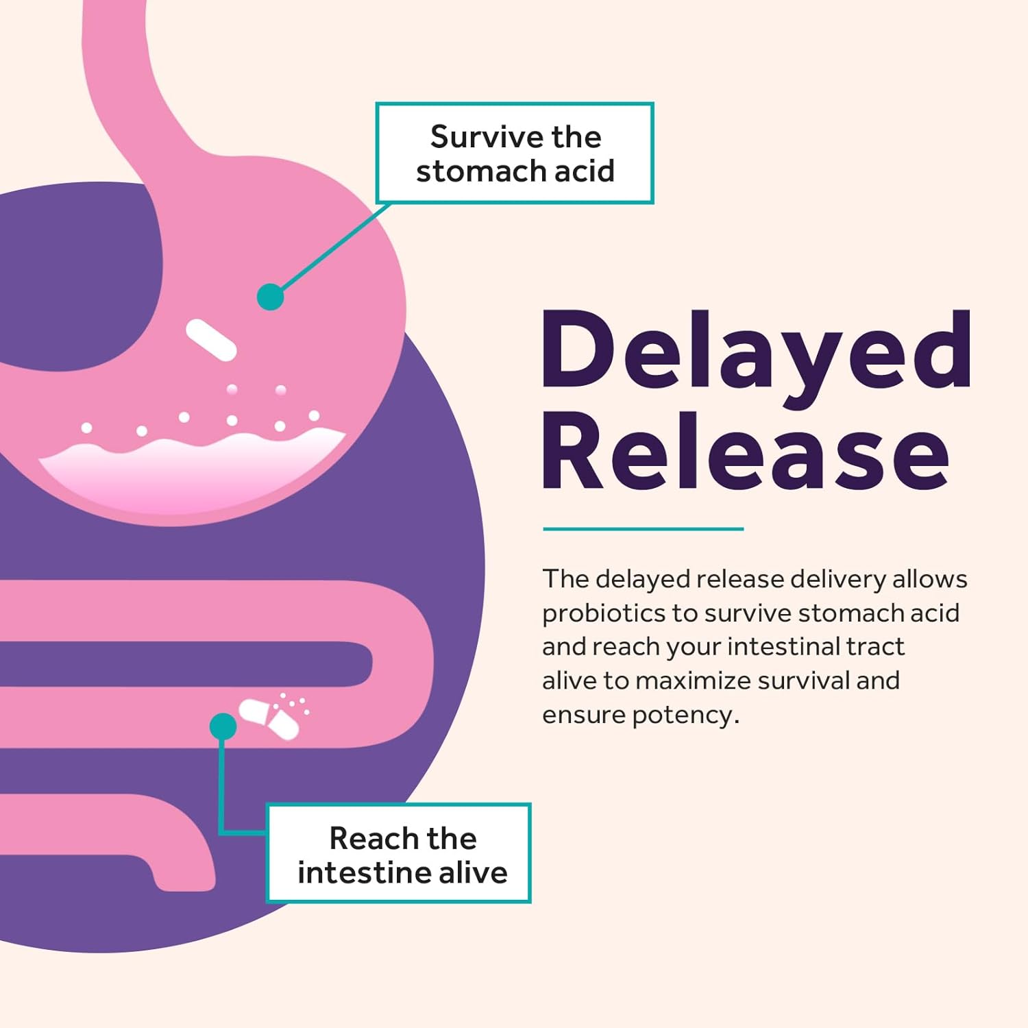 Shelf Stable & Delayed Release: Our shelf stable womenâs probiotics and prebiotics don't need refrigeration, meaning that you can throw it in your briefcase, handbag or suitcase and enjoy it anytime and anywhere you like. The delayed release technology allows our acid and bile resistant probiotics make their way through the stomach alive to be of benefit
