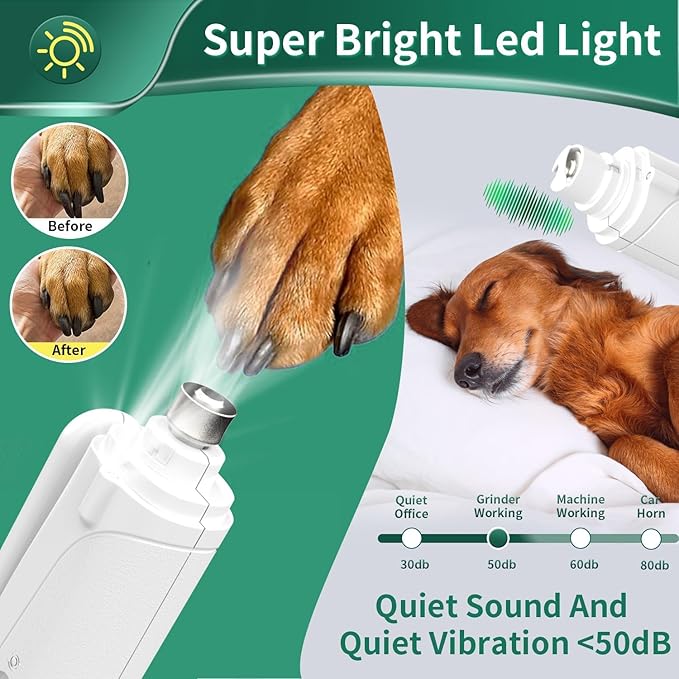 - LED Illumination: Features 2 LED lights for clear visibility of nail and blood vessels. Helps prevent over-grinding, ensuring gentle and accurate grooming.
