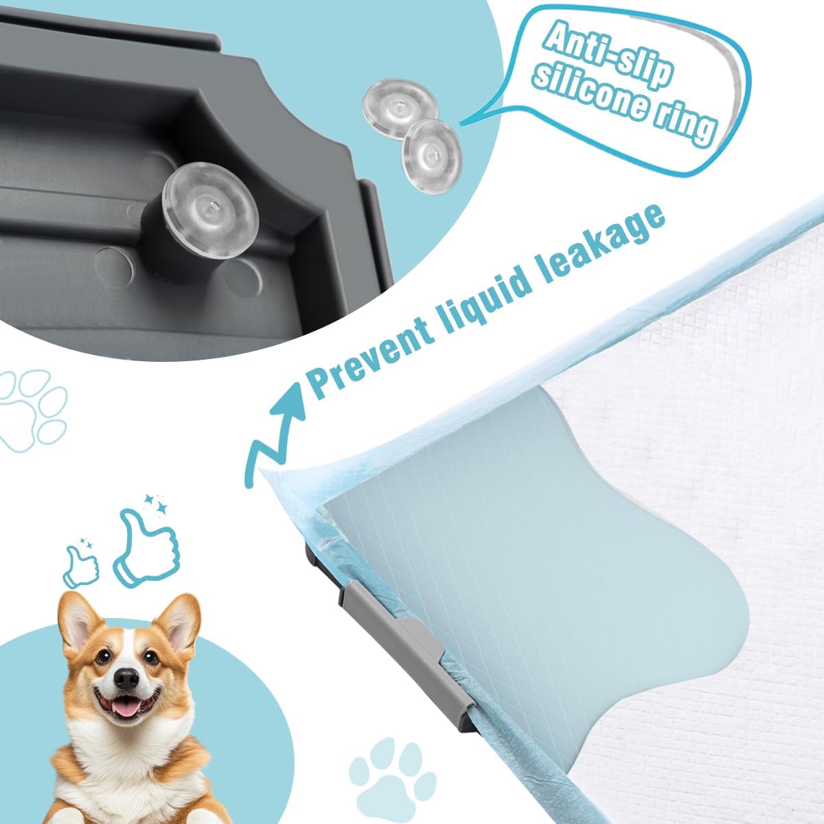 Anti-Biting Safety Locks: This Dog Training Pads Holder Is Equipped With Safety Lock Buckles, Which Can Prevent Your Pets From Tear The Disposable Dog Training Pads. The Bottom Of The Dog Potty Tray Is Fitted With A Silicone Ring With Anti-Slip Effect, Ensuring That The Position Of The Pee Pad Tray Remains Unchanged When Your Pet Is Using The Toilet Or Moving On The Tray