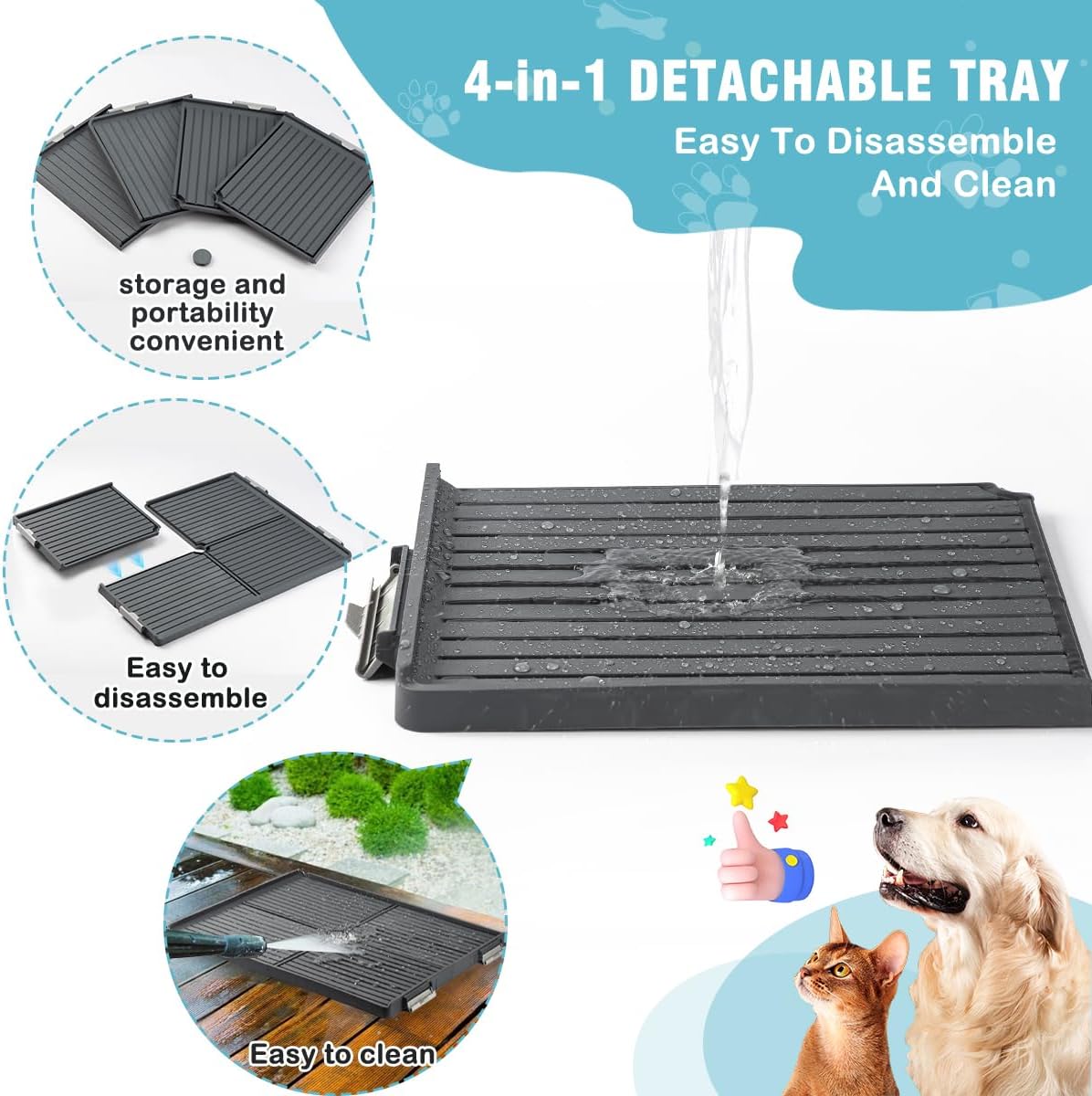 4-In-1 Detachable Tray: The Raised Edge Around The Dog Potty Tray Ensures That Any Urine Stays On The Mat And Doesn’T Overflow Onto The Floor When Your Pet Steps Around After They Have Gone To The Toilet. This Helps Keep Your Home Clean And Dry. Afterward, You Can Easily Disassemble The Dog Pee Pad Holder Into Four Individual Sections. This Makes It Remarkably Convenient To Clean Any Urine That Has Accumulated In The Tray