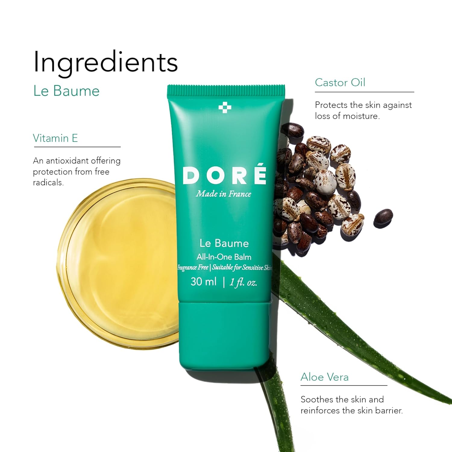 Doré - Le Baume All-In-One Balm | Fragrance-Free Face Balm Moisturizer For Sensitive Skin | Multi-Purpose Lip Moisturizer For Women | Night Ointment With Vitamin E (1 Fl Oz | 30 Ml)