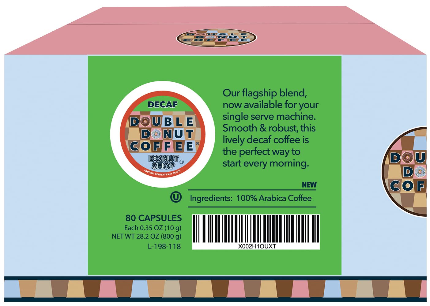 Double Donut Decaf Coffee, Decaf Donut Shop Coffee, Decaf Coffee Pods For Keurig K Cups Machines, Hot Or Iced Coffee, Single Serve Decaffeinated Coffee In Recyclable Pods, 80 Count Value Pack