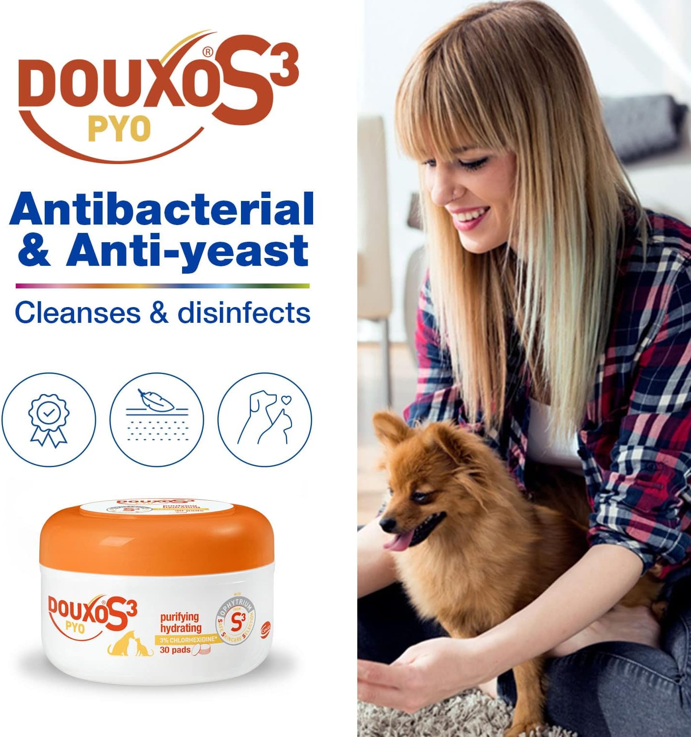 Douxo S3 Pyo Pads, Chlorhexidine Antibacterial & Anti-Yeast Dog And Cat Wipes, Gentle And Hydrating , Hypoallergenic Formula, Recommended By Vets And Clinically Proven, 30 Pads