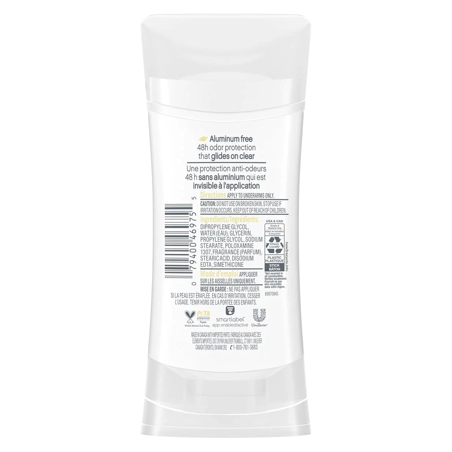 About this item EFFECTIVE PROTECTION, KINDEST TO SKIN: Dove 0% Aluminum Deodorant Stick is the kindest deodorant on skin with no compromise on odor protection SAFE FOR SENSITIVE SKIN: Alcohol-free deodorant with no baking soda helps reduce skin irritation after shaving ODOR PROTECTION: Deodorant stick without aluminum provides 48-hour odor protection and long-lasting freshness SOFT COMFORTABLE UNDERARMS: Dove 0% aluminum stick deodorant is formulated with ¼ moisturizers for soft, smooth underarms EASY TO APPLY: Aluminum Free deodorant for women glides on easily for a smooth application › See more product details,EFFECTIVE PROTECTION, KINDEST TO SKIN: Dove 0% Aluminum Deodorant Stick is the kindest deodorant on skin with no compromise on odor protection,SAFE FOR SENSITIVE SKIN: Alcohol-free deodorant with no baking soda helps reduce skin irritation after shaving,ODOR PROTECTION: Deodorant stick without aluminum provides 48-hour odor protection and long-lasting freshness,SOFT COMFORTABLE UNDERARMS: Dove 0% aluminum stick deodorant is formulated with ¼ moisturizers for soft, smooth underarms,EASY TO APPLY: Aluminum Free deodorant for women glides on easily for a smooth application