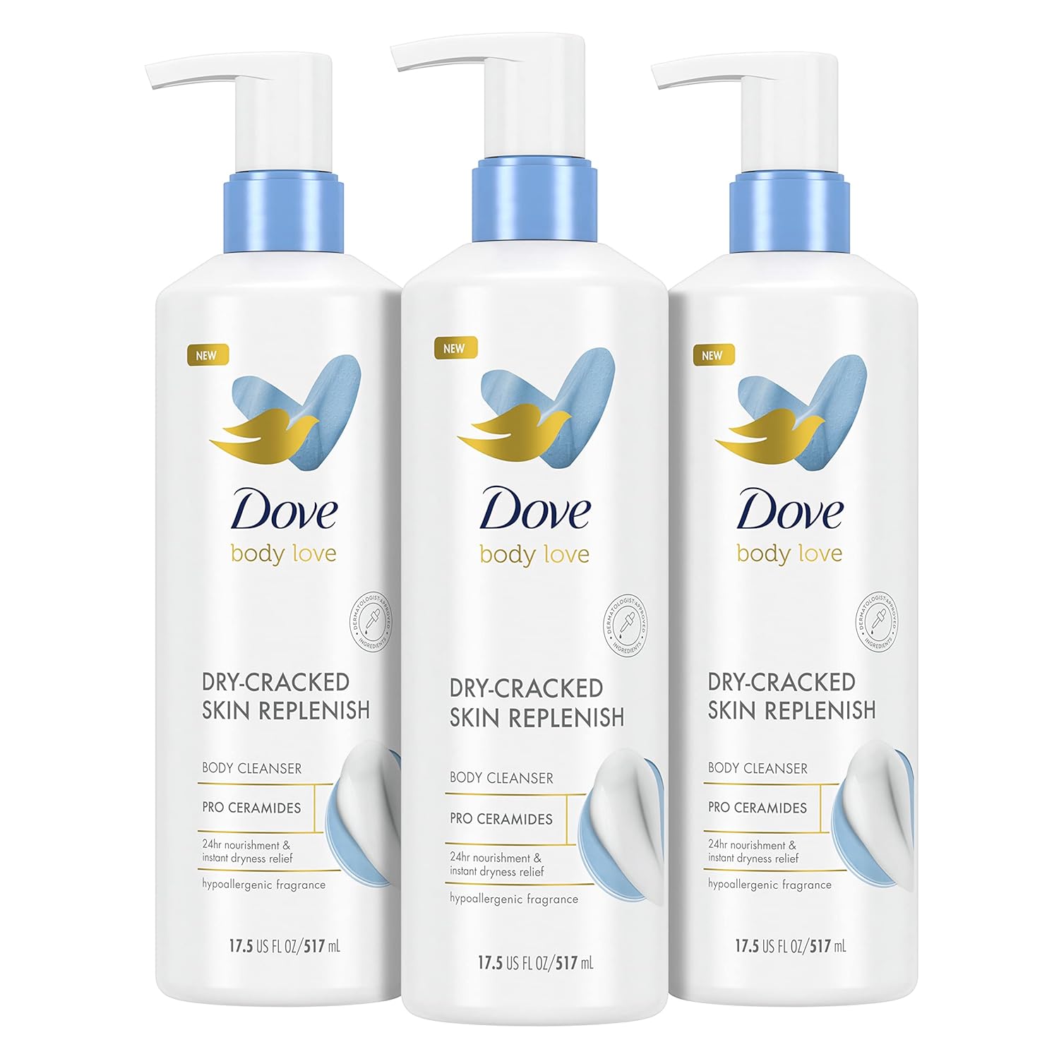 Care for your skin condition, now starts in the shower with the Dove Body Love Dry-Cracked Skin Replenish Body Cleanser with Pro Ceramides, boosts skin's natural ability to lock in moisture and intensively moisturizes and restores dry-cracked skin. The paraben-free and sulfate-free body wash is made with plant-based cleansers and 10x Moisture Restore Complex* to transform even the driest skin in just one shower. How To Use: Squeeze a generous amount of Dove Dry-Cracked Skin Replenish Body Cleanser into your palms, or onto a loofah. Naturally-derived cleansers help this body cleanser create a luxurious lather. Smooth the gentle body wash formula over your body and allow the light lather to caress, smooth, and hydrate skin. Rinse with warm water to reveal skin that feels moisturized, smooth, and soft. This body cleanser for your skin care routine is PETA-certified vegan, and is made in 100% recycled plastic bottles, so you can feel good about switching to Dove. At Dove, our vision is of a world where beauty is a source of confidence, and not anxiety. So, we are on a mission to help the next generation of women develop a positive relationship with the way they look—reaching over ¼ of a billion young people with self-esteem education by 2030. We are also committed to a landmark new initiative as part of our 2025 commitment to reduce plastic waste; reducing over 20,500 metric tons of virgin plastic annually by making the iconic beauty bar packaging plastic-free globally; launching new 100% recycled plastic bottles; and trialing a new refillable deodorant format that radically reduces plastic use. As one of the largest beauty brands in the world, we are revealing an agenda setting commitment to tackle the global beauty industry’s plastic waste issue. *10x the moisturizes of the next leading body wash,REPLENISH DRY-CRACKED SKIN: Dove Body Love Dry-Cracked Skin Replenish Body Cleanser delivers 24-hour nourishment and instant dryness relief,MADE WITH DERMATOLOGIST-APPROVED INGREDIENTS: This body cleanser with Pro Ceramides boosts skin's natural ability to lock in moisture,UNIQUE MOISTURIZING FORMULA: This gentle body cleanser is formulated with 10x Moisture Restore Complex with 10x the moisturizes of the next leading body wash,CLEAN INGREDIENTS: This cleanser is made with naturally-derived gentle skin cleansers, no sulfates or parabens, is PETA-certified vegan, and made from 100 percent recycled plastic bottles,HYPOALLERGENIC FRAGRANCE: This gentle body cleanser is made with a hypoallergenic fragrance and is suitable for sensitive skin