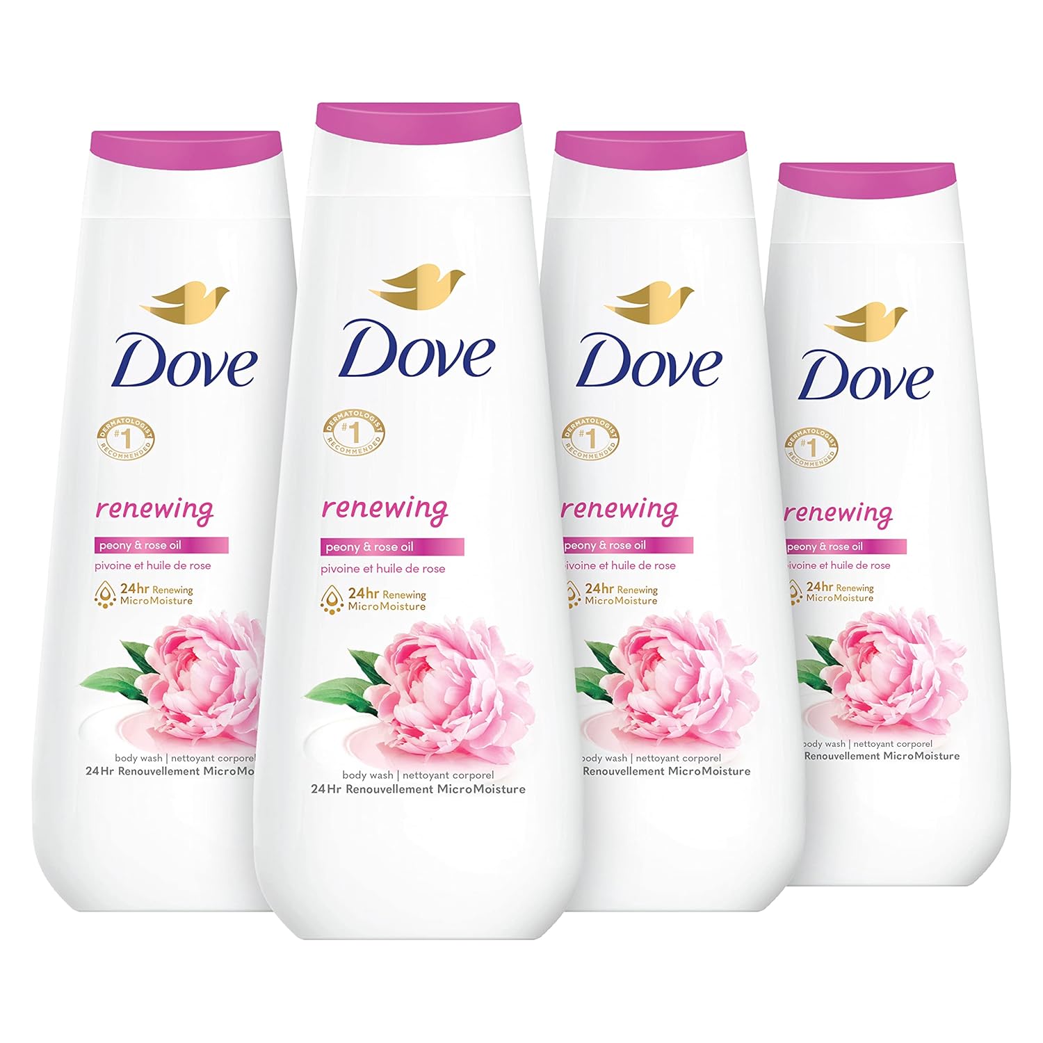 Dove Body Wash 4 Count Renewing Peony And Rose Oil For Renewed, Healthy-Looking Skin Gentle Skin Cleanser With 24Hr Renewing Micromoisture 20 Oz