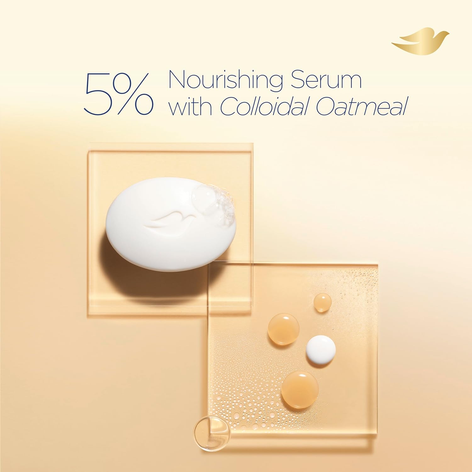 Dove Fragrance Free Beauty Bar Soothing Relief 5 Bars Moisturizes Eczema-Prone Skin 5% Nourishing Serum With Colloidal Oatmeal 7.5 Oz
