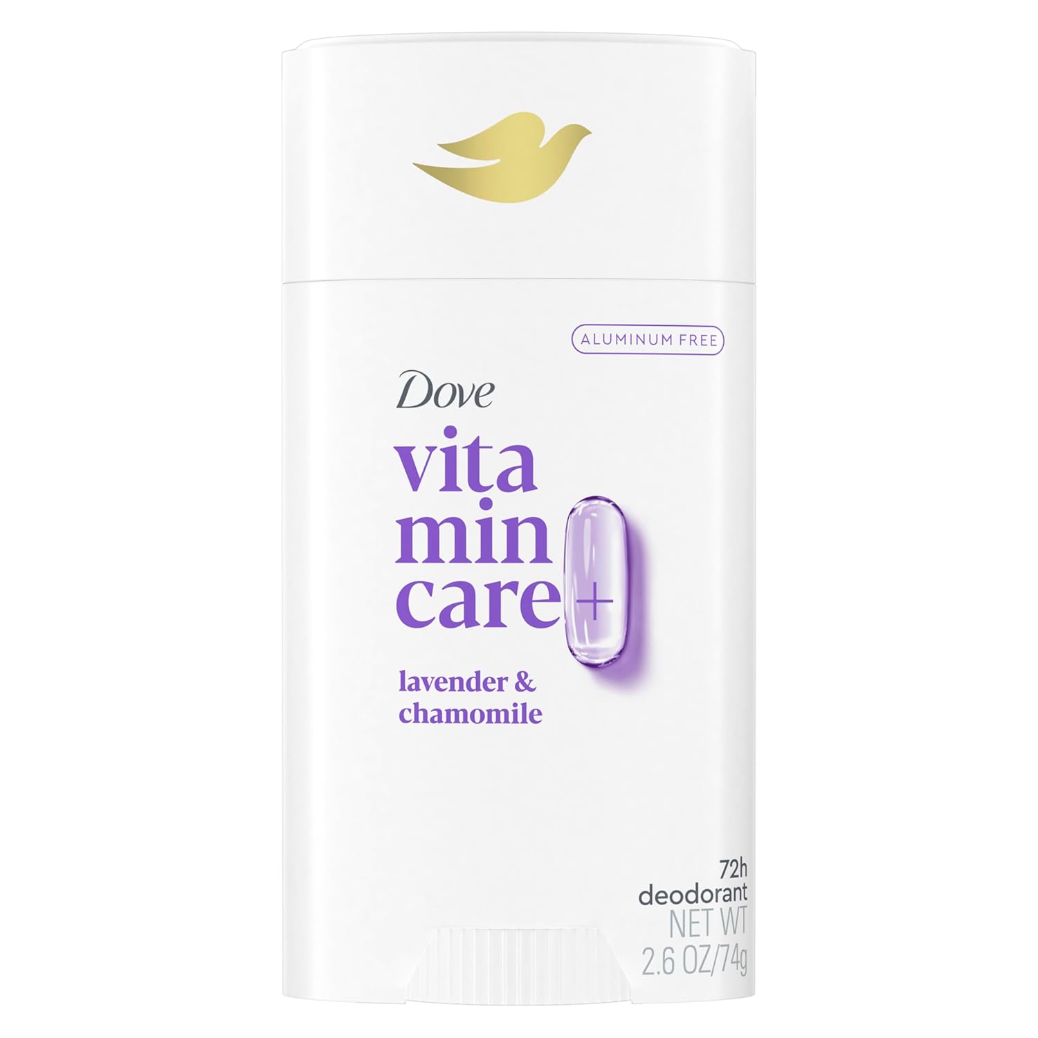 Dove Vitamincare+ Aluminum Free Deodorant Stick Lavender & Chamomile For 72H Odor Protection, Breathable Deodorant For Women 2.6 Oz
